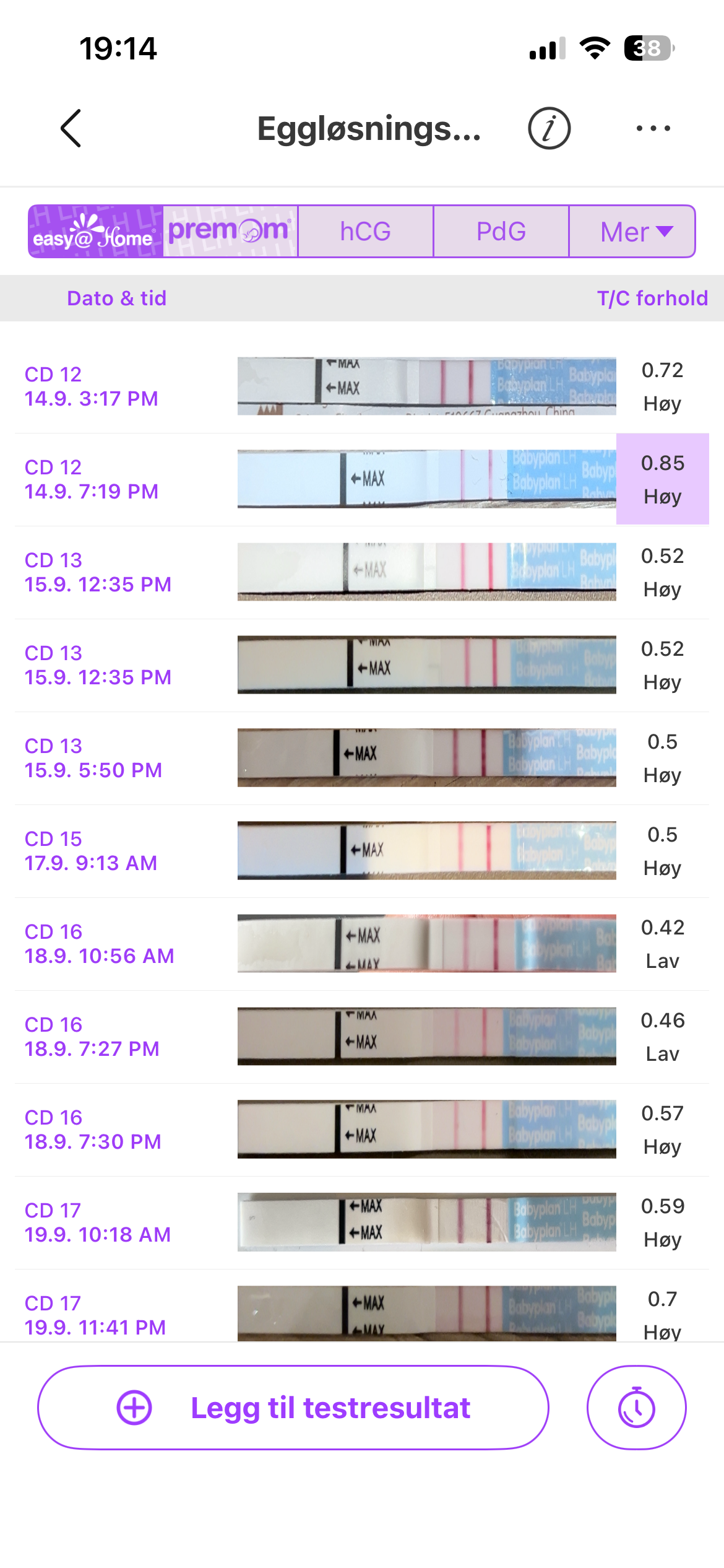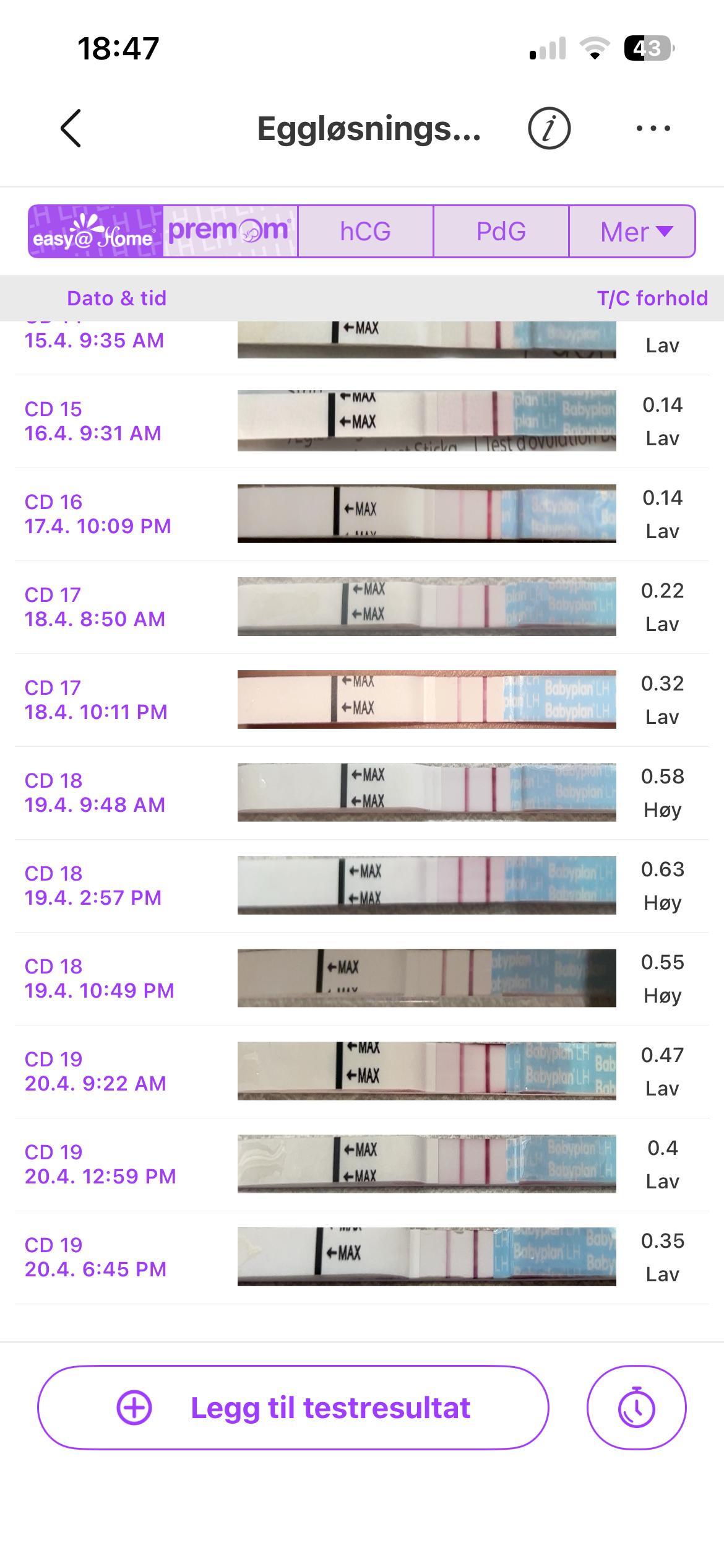 Får bare håpe egget slipper.. Jeg som egentlig hadde så troen på denne syklusen. Noen som har hatt lignende EL tester og blitt gravid?