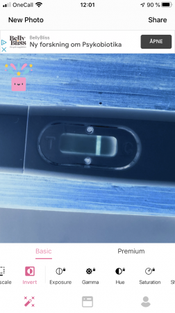 Er bildet redigert? Jeg synes streken ser rosa ut, skyggestreker får meg bekjent ikke farge:) Den digitale er vel heller ikke tidlig test, så KAN jo hende den digitale vil slå ut om noen dager. Gud så spennende! :woot: