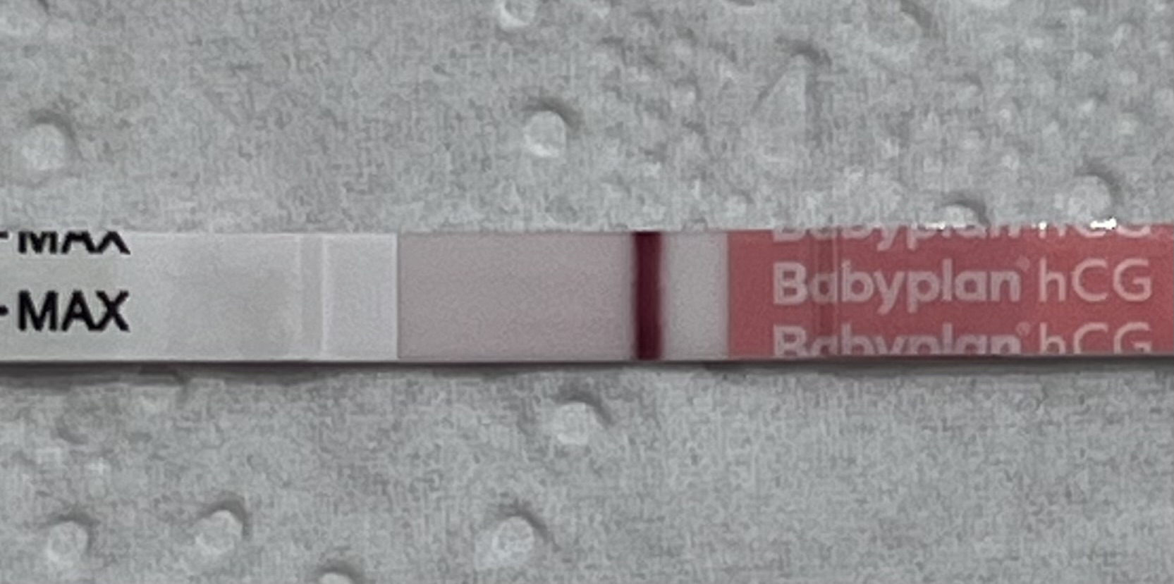 Jeg synes den ser lovende ut! Vet at man egentlig ikke skal dømme tørkede tester, men på babyplan har jeg aldri kunnet se streken på tørkede negative tester, bare de testene hvor jeg faktisk har vært gravid.