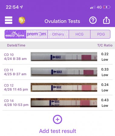 Takk! Jeg håper den ikke blir positiv før tidligst i morgen kveld(onsdag)! Da er det en liiiten mulighet for at vi rekker å legge inn aksjer fredag kveld, og at EL da akkurat har skjedd. Tok EL-test nå, den er ikke positiv, men litt høyere enn den har vært. Spennende å se i morgen tidlig!