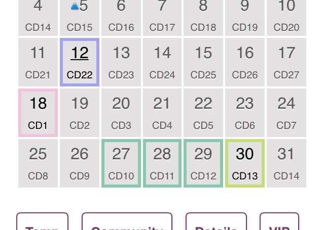 Den ene dagen med forskjellig farge er eggløsningsdagen. De andre er fruktbare dager.Ja det viste jeg, men hvorfor er det to forskjellige grønnfarger?