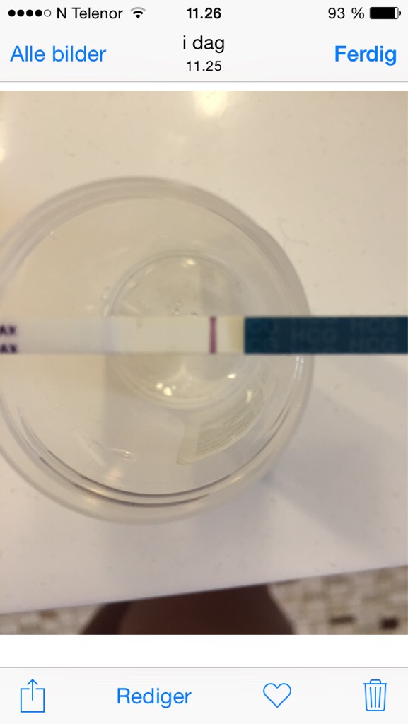 Ingen TR her, testet i dag men ikke morgenurin og ser så vidt antydning til en strek, men kanskje det er skyggestrek. Legger ved et bilde, men det er vanskelig å tyde :p
