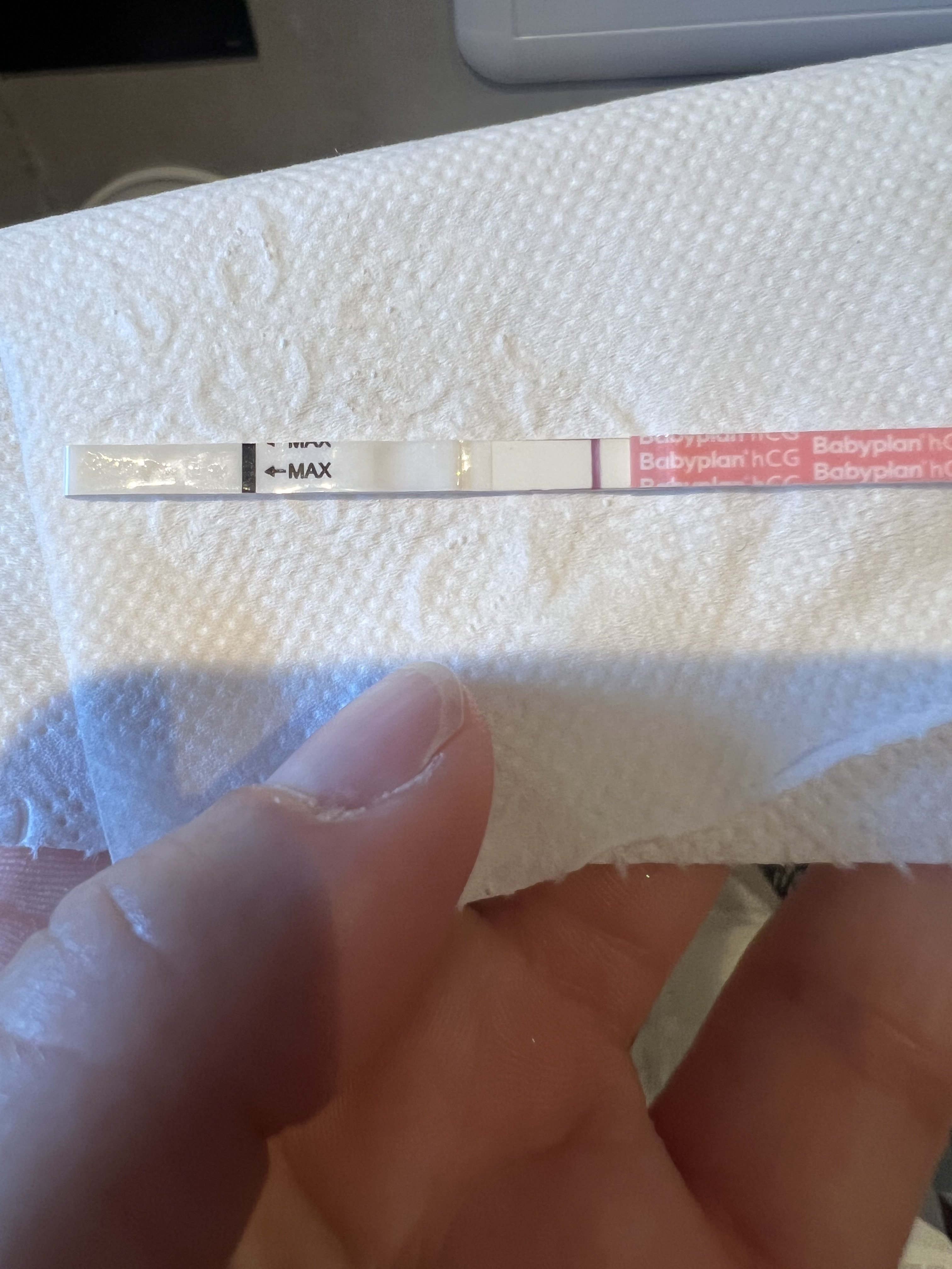 Så spennende, kjenner håpet stiger litt her nå!Jeg ser en strek og den var ikke vanskelig å seHåper det er babystrek