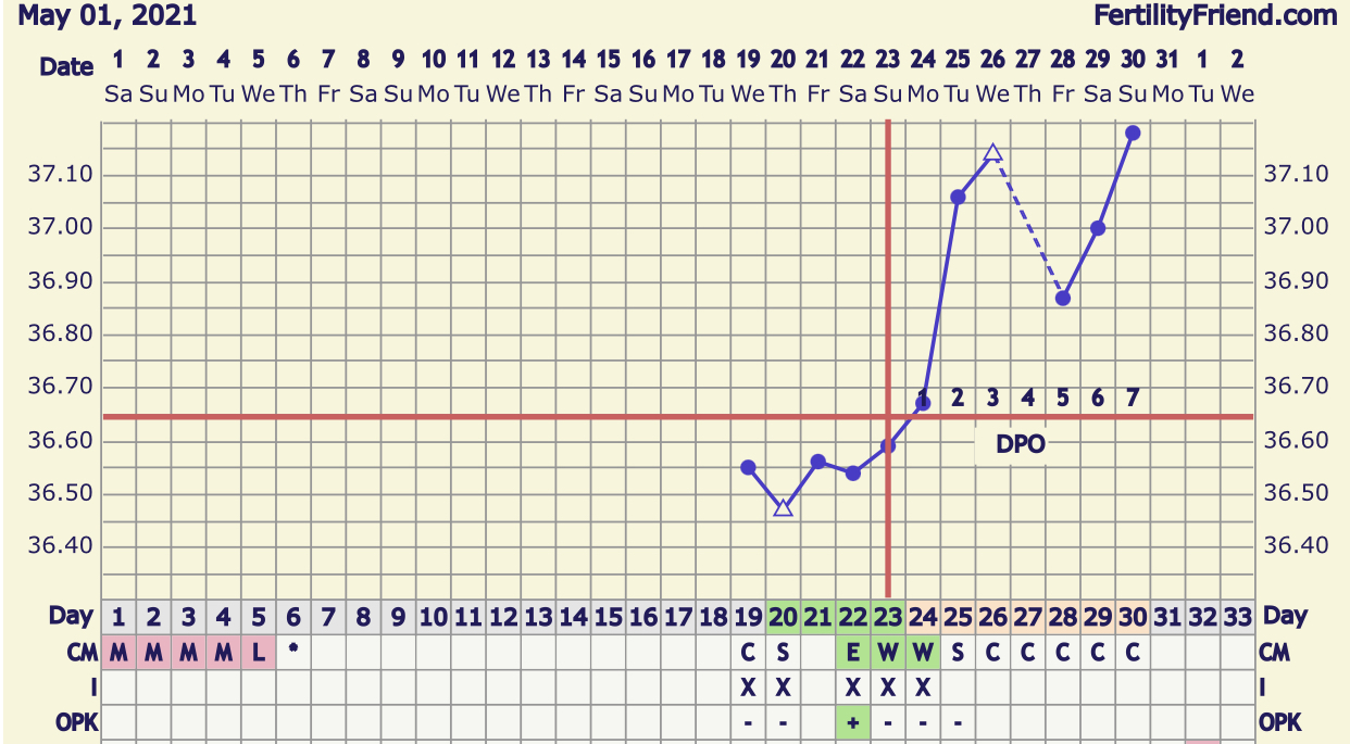 Kjenner ingenting, de ømme brystvortene jeg pleier å ha mellom el og ikm er borte så kjenner nada