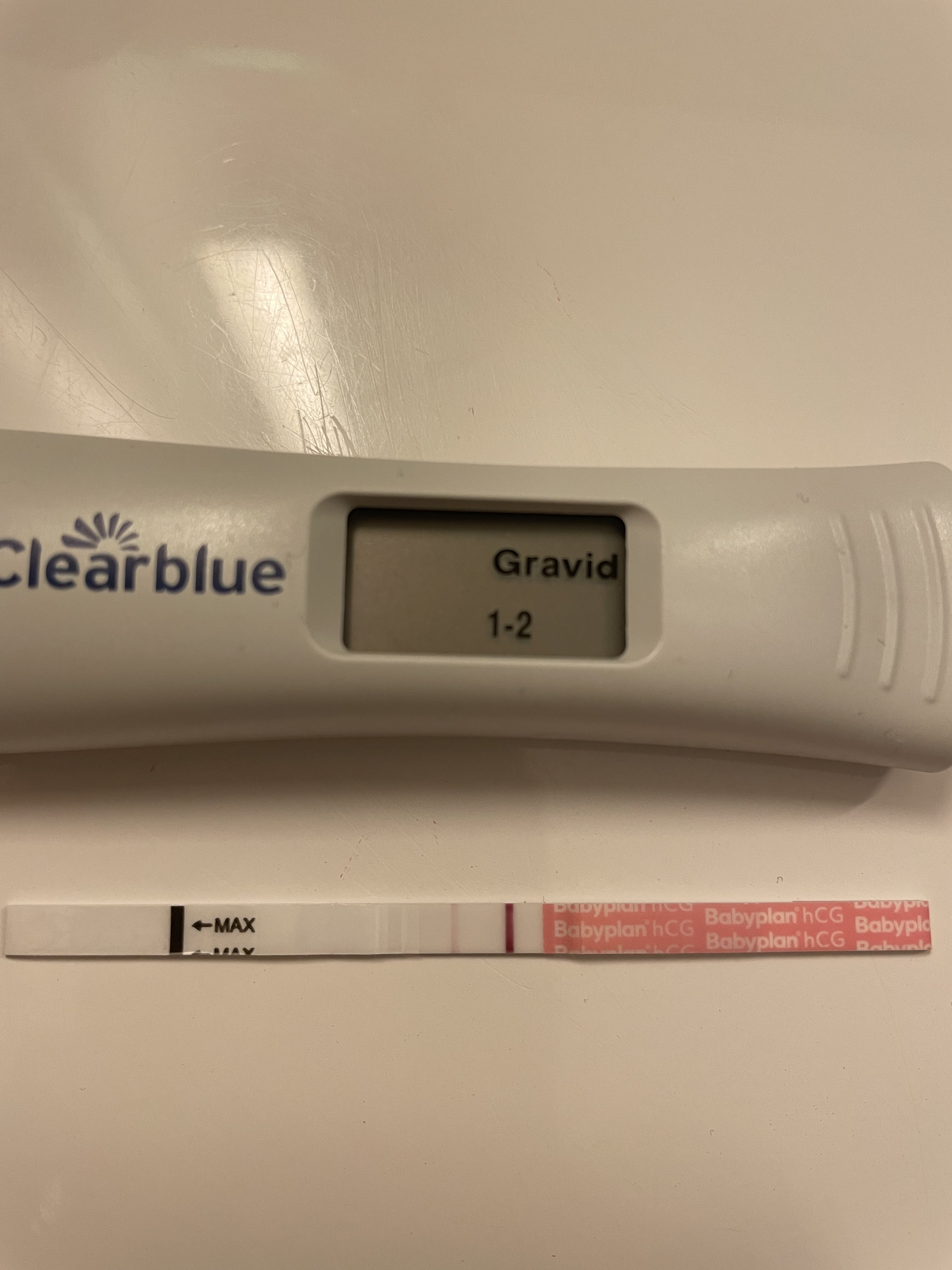 Er nok bare lyset, er strek helt over, men sterkere nederst på testen.. ja jeg blir nok og høre om å få ta blodprøver i morgen, just in case :Heartred Når er det vanlig og få utslag på CB digital?