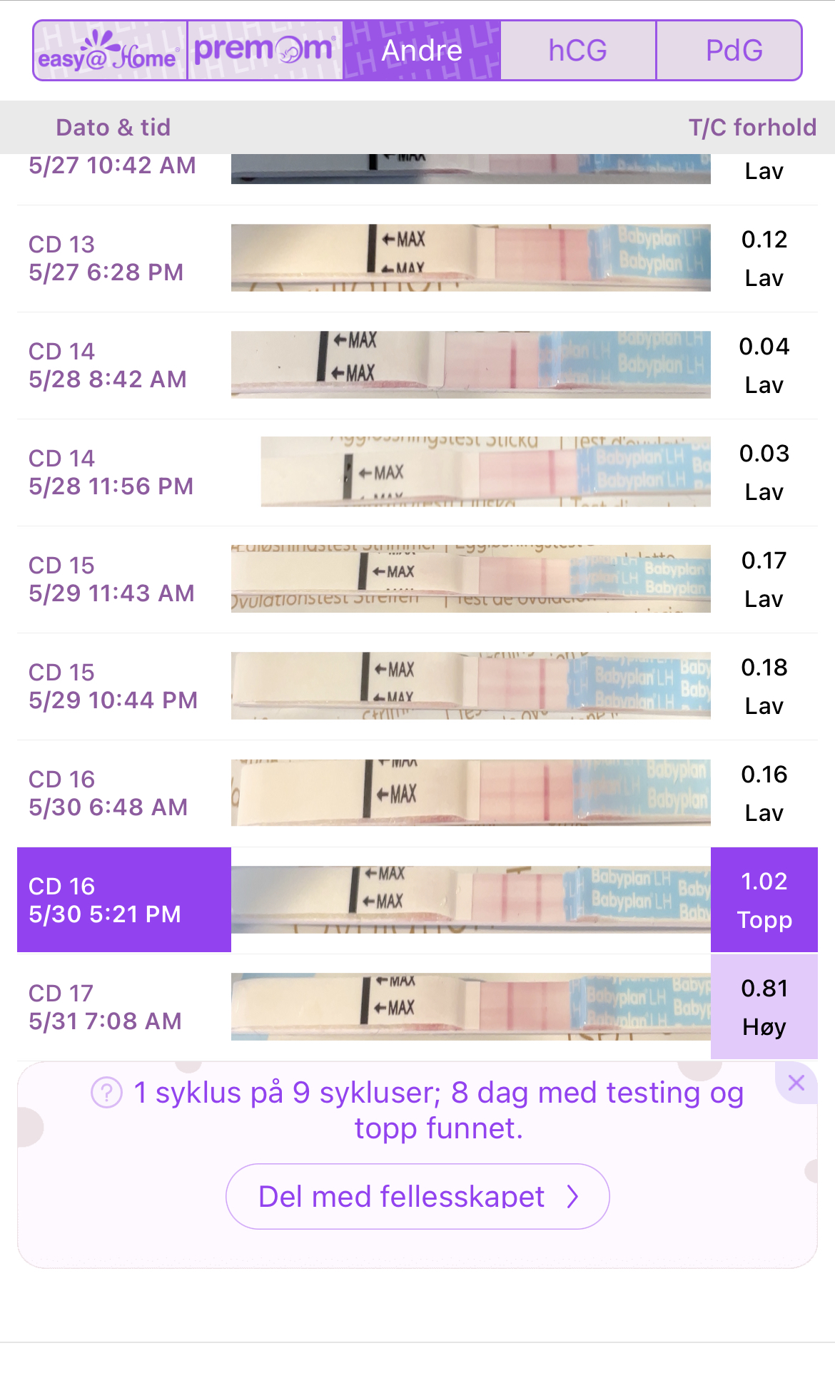 Inne på «daglige logger» kan du hake av for eggløsningsdagHvordan får jeg endra grafen fra DPO 4 til EL ? Jeg har lagt inn testeneeller må det være premom tester ?