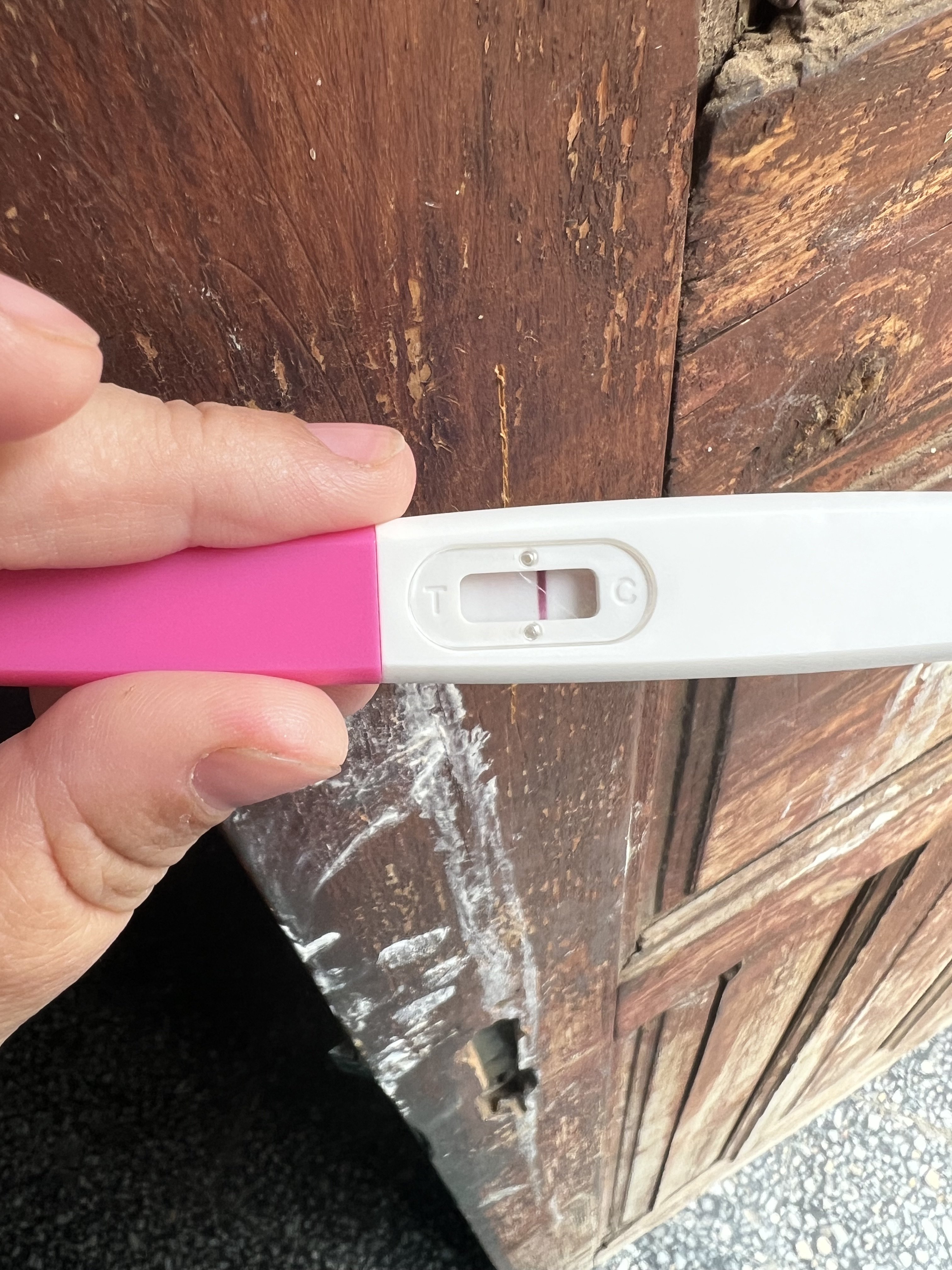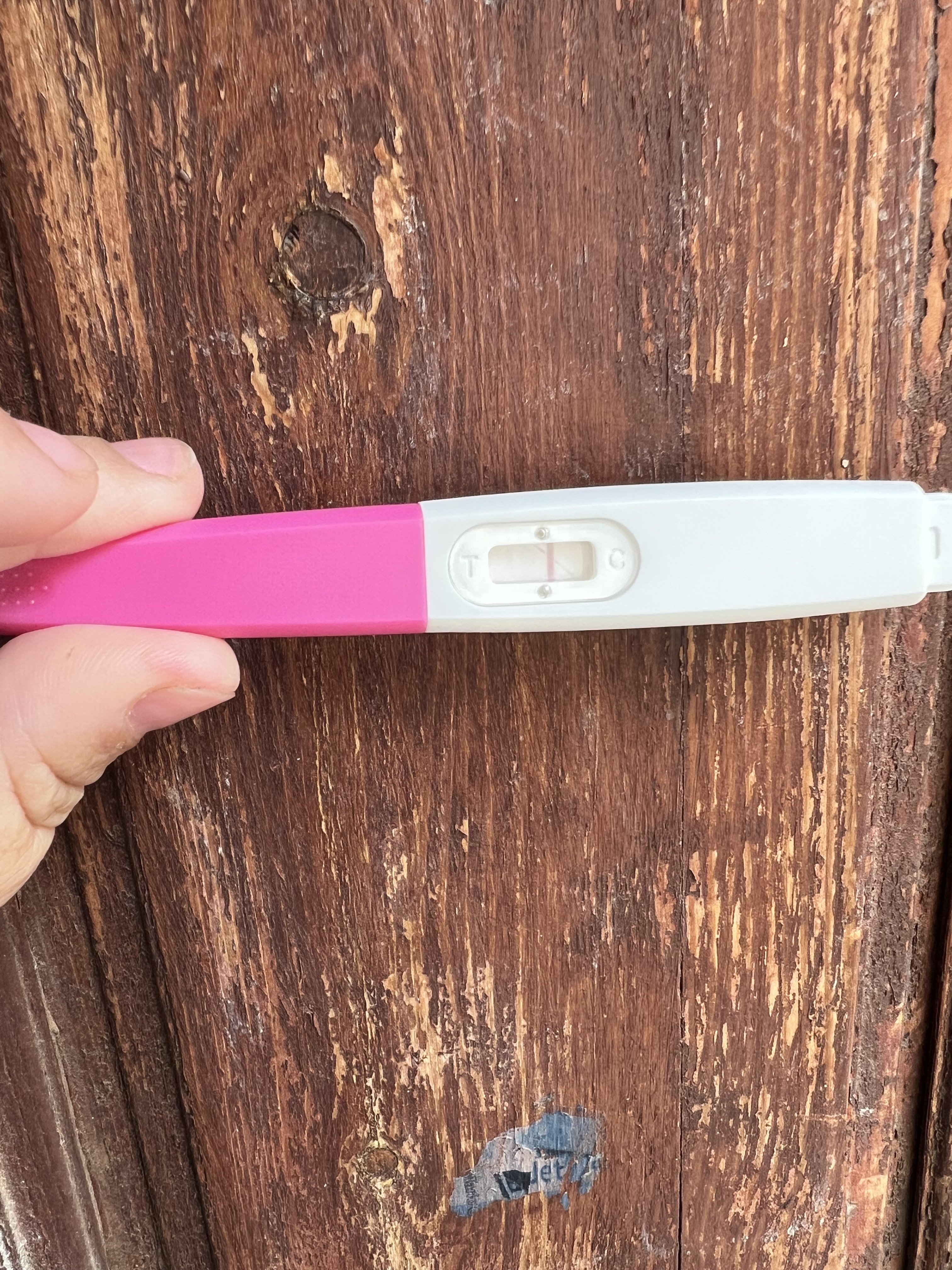 orker Kanskje ikke engang gå til apoteket og mannen min syns det er flaut å kjøpe her i hjemlandet hans og alle kjenner alle osv.Ikke noe tvil om strek her vel? :O <3Var dumt å teste i dag 9 DPO. Har heller ikke brukt stav på en god stund så måtte stå og myse og vri på den. Håper de har en annen type test på apoteket her. Når bør jeg teste igjen? I kveld?![]()