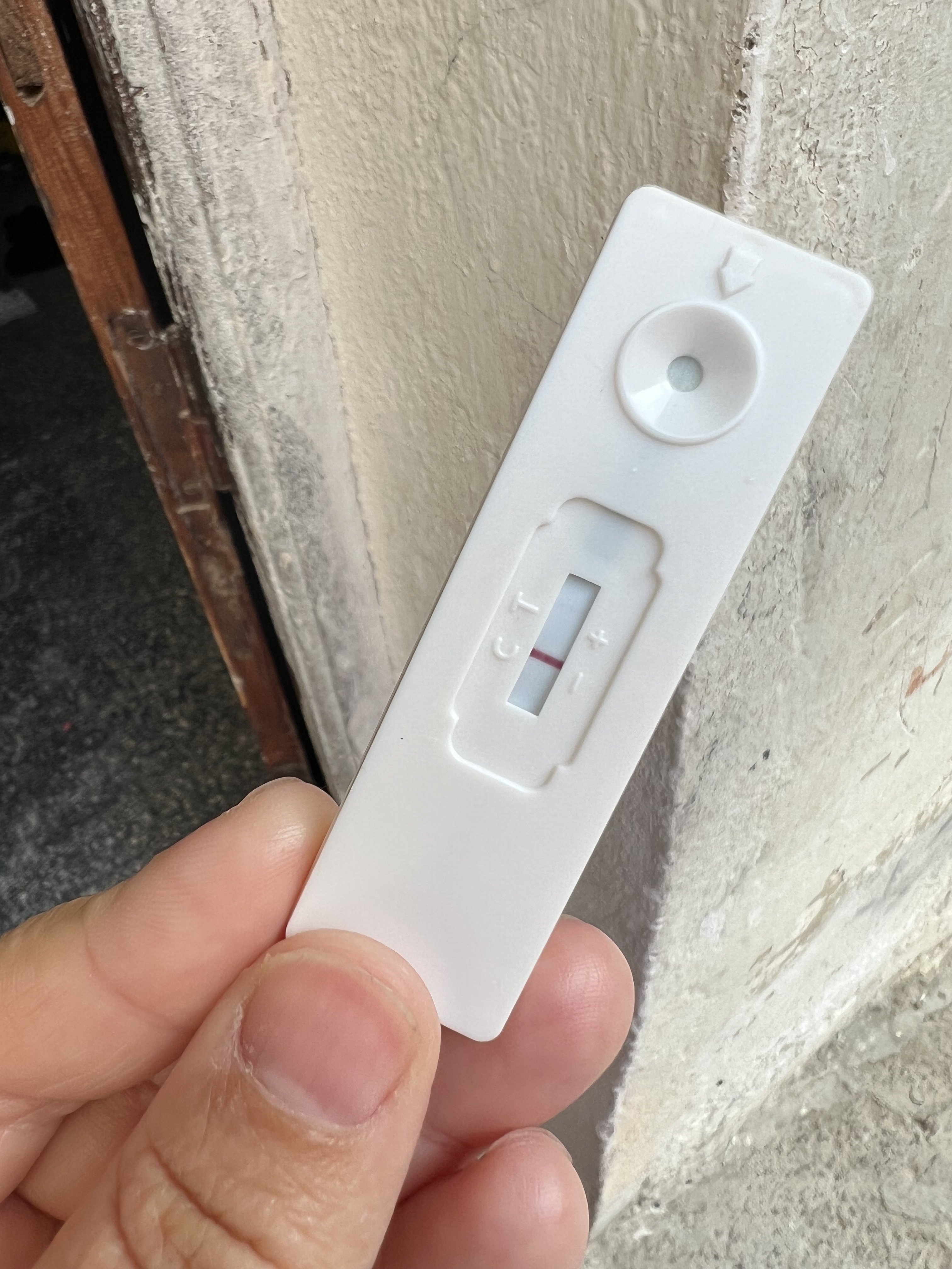 Kassetten har ikke noe lokk oppå. Er samme som covid test hehe