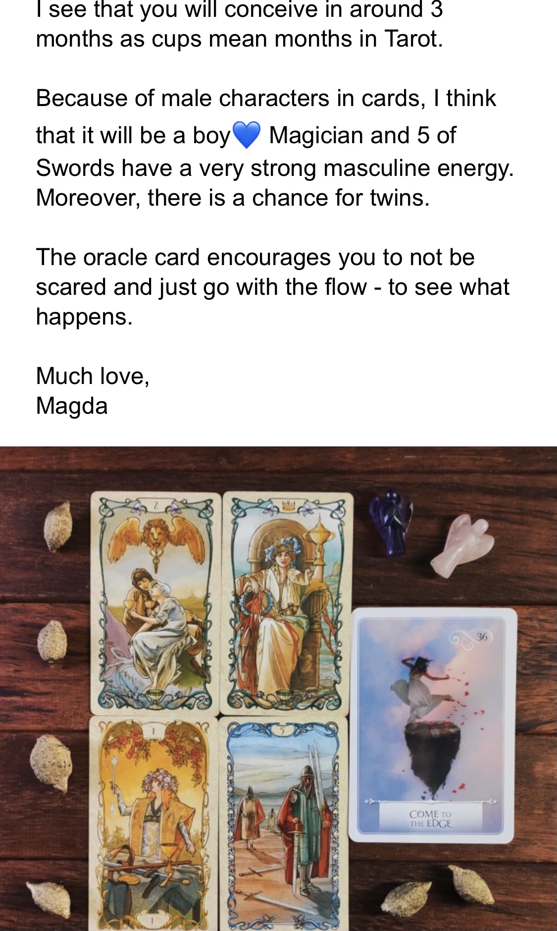 MEN skal jeg gå ut i fra hva jeg fikk vite av mediumet jeg spurte om når jeg skulle bli gravid, så sa hun om rundt 3 mnd. Blir spennende å se om det stemmer;)