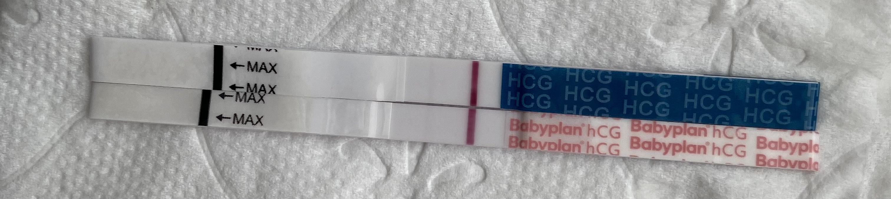 Dette er sist test jeg tok 9.juli for å teste ut hcg-en. Dessverre ble bilde tatt litt sent, så den er tørket. Ikke så lett å sammenlikne: