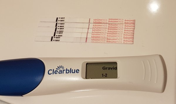Herlig! Da kan jeg vel sette dere på gravid?Den nederste strimmeltesten og den digitale er fra nå på morgenkvisten![]()