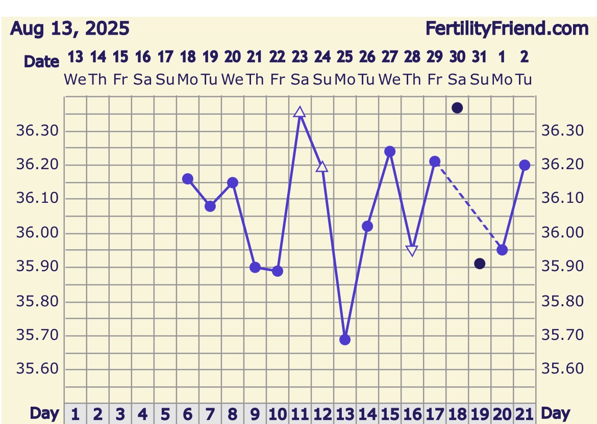 Makesure fra søndags morgen/formiddag, babyplan fra idag. Kan jeg ha misset toppen? Cd 18 i dag!