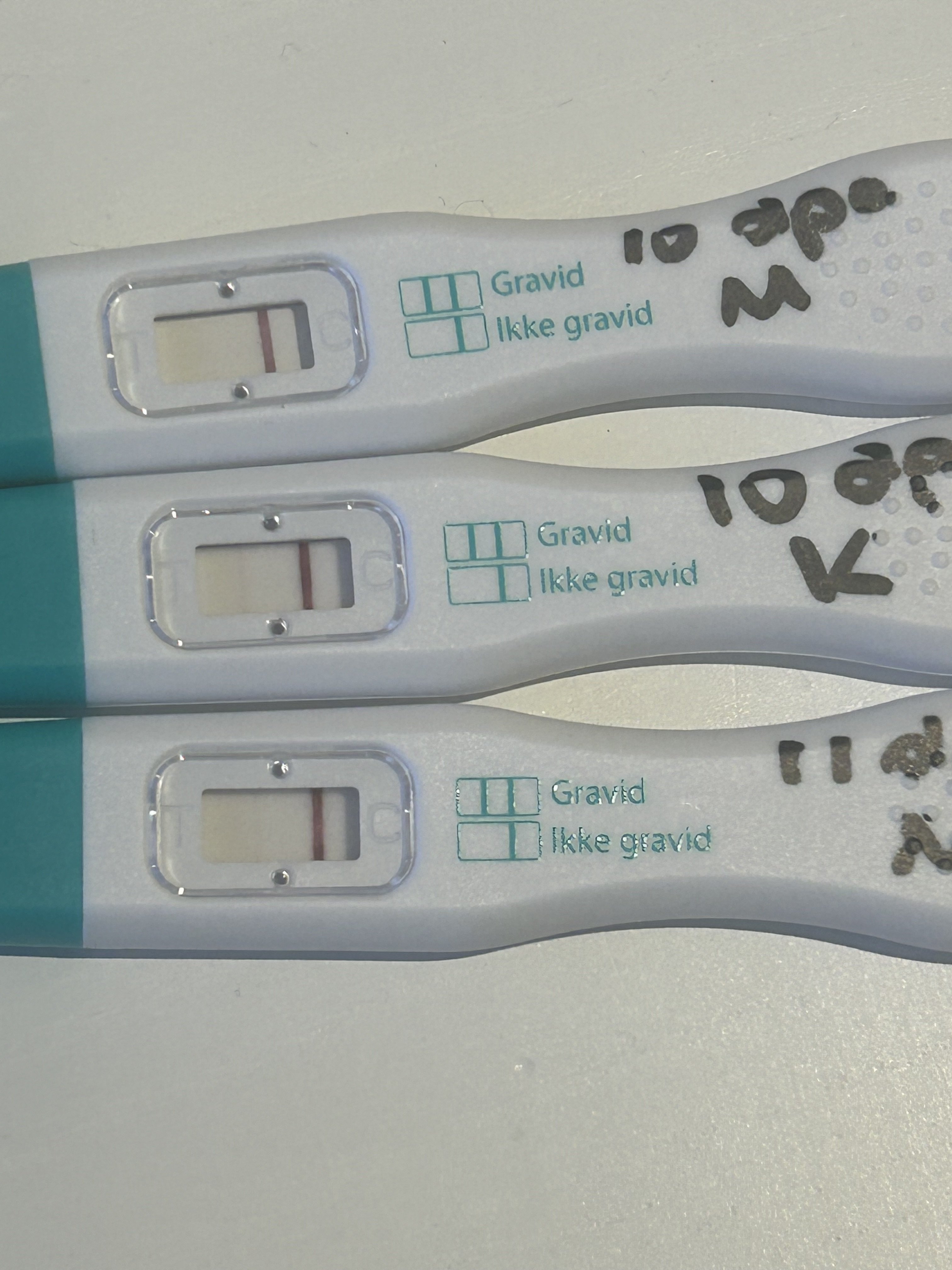Ser jo svak/skyggestrek på den fra morgen i dag også, men er jo svakere enn i går kveld. Tror jeg får kjøre til apotek og kjøpe flere tester xsmile9