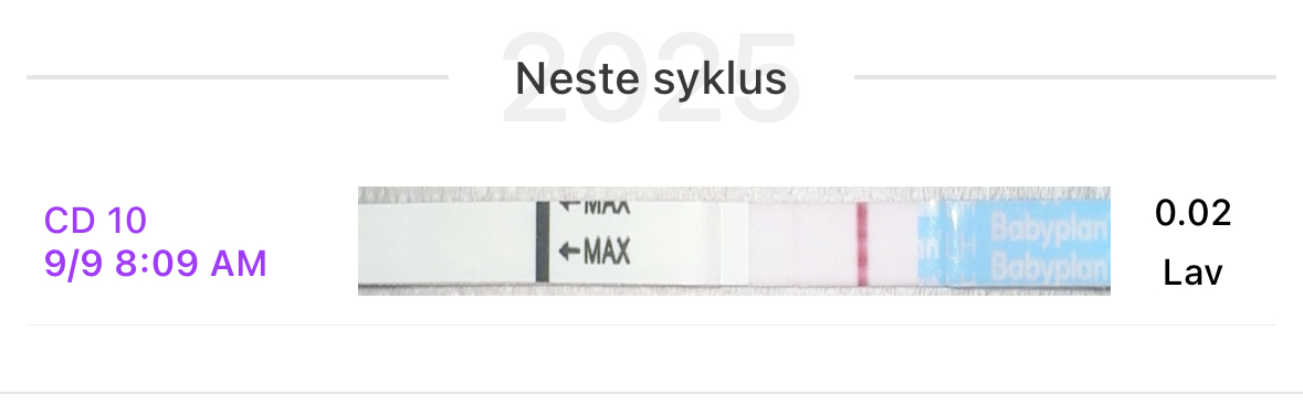 Ja, sikkert lurt å fortsette å teste i og med at den ikke var over 1.0Positiv LH test går, så droppet den for så å stige igjen i dag tidlig. Var veldig konsentrert urin så kanskje ikke helt riktig testresultat. Skal teste igjen etter jobb. La aksjer i går så er vel bare å fortsette å kjøre på.
