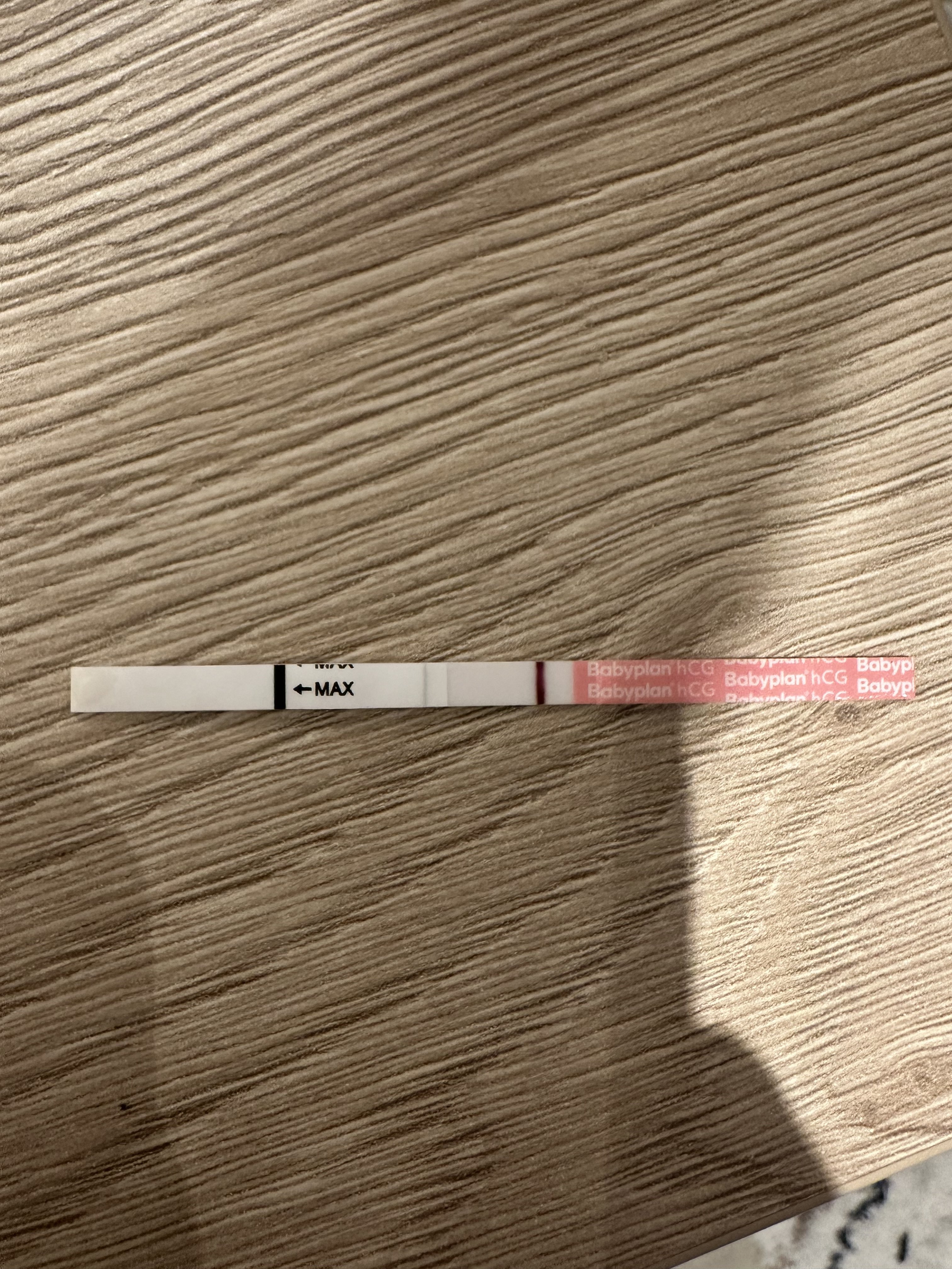 Mulig jeg ser en kjempe svak strek på Babyplan testen… men vanskelig å si om det i såfall er skyggestrek eller starten på noe.