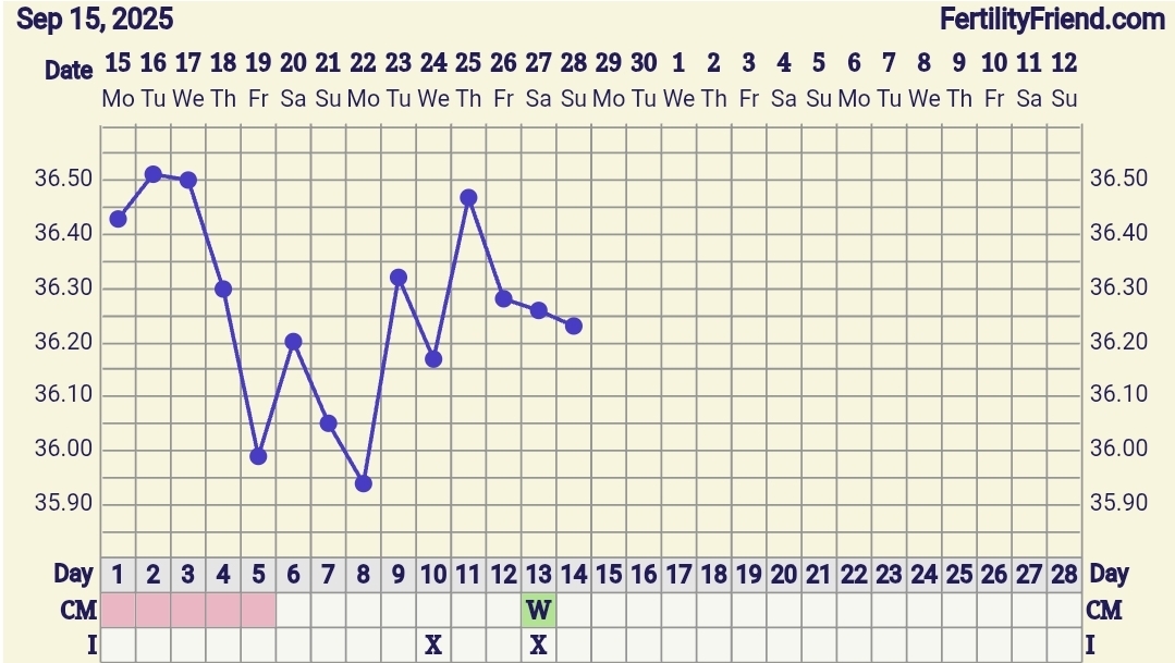 Torsdag og i dag men ikke i går? Hmmmm vanskelig vanskelig. Siden peak var i går ville jeg antatt EL var i dag siden du hadde EL smerter da? Men ja, aksjer i morgen så er du good frem til minst onsdag i teorien da :happy: