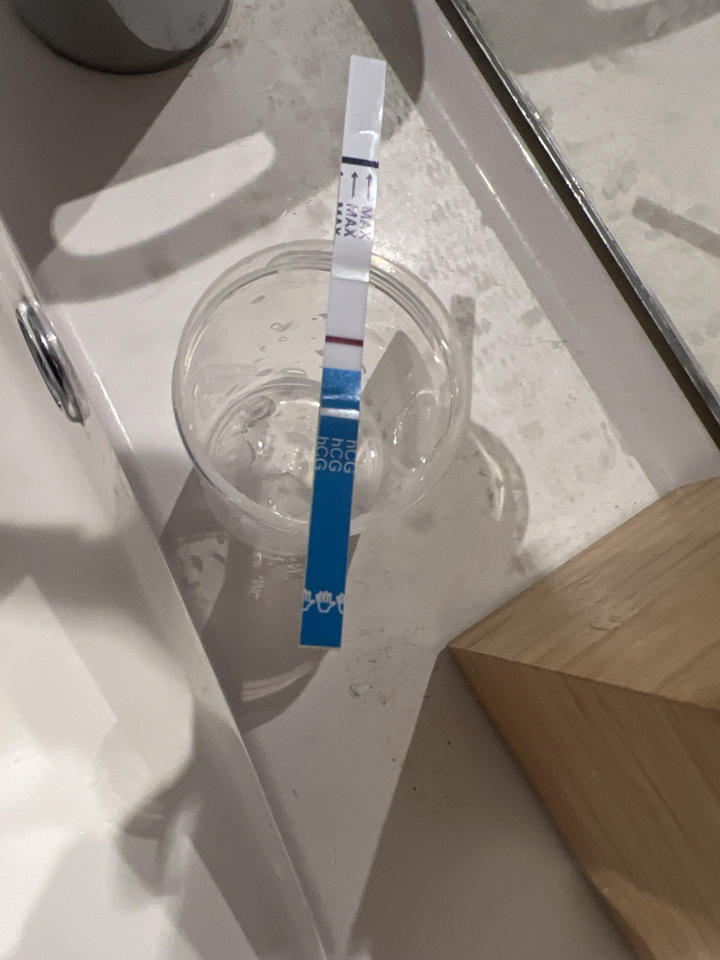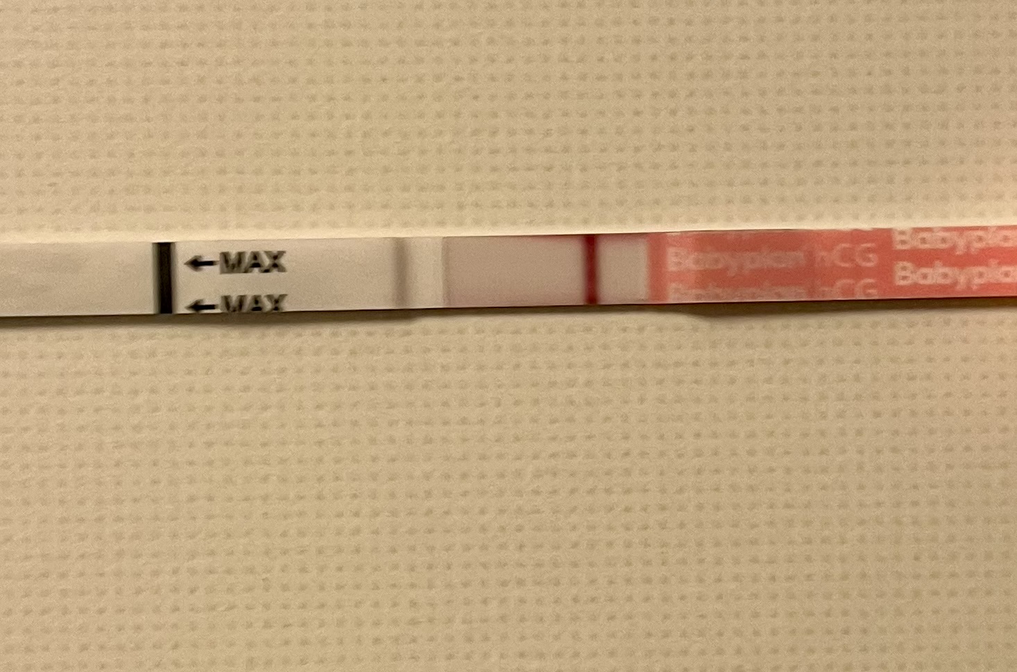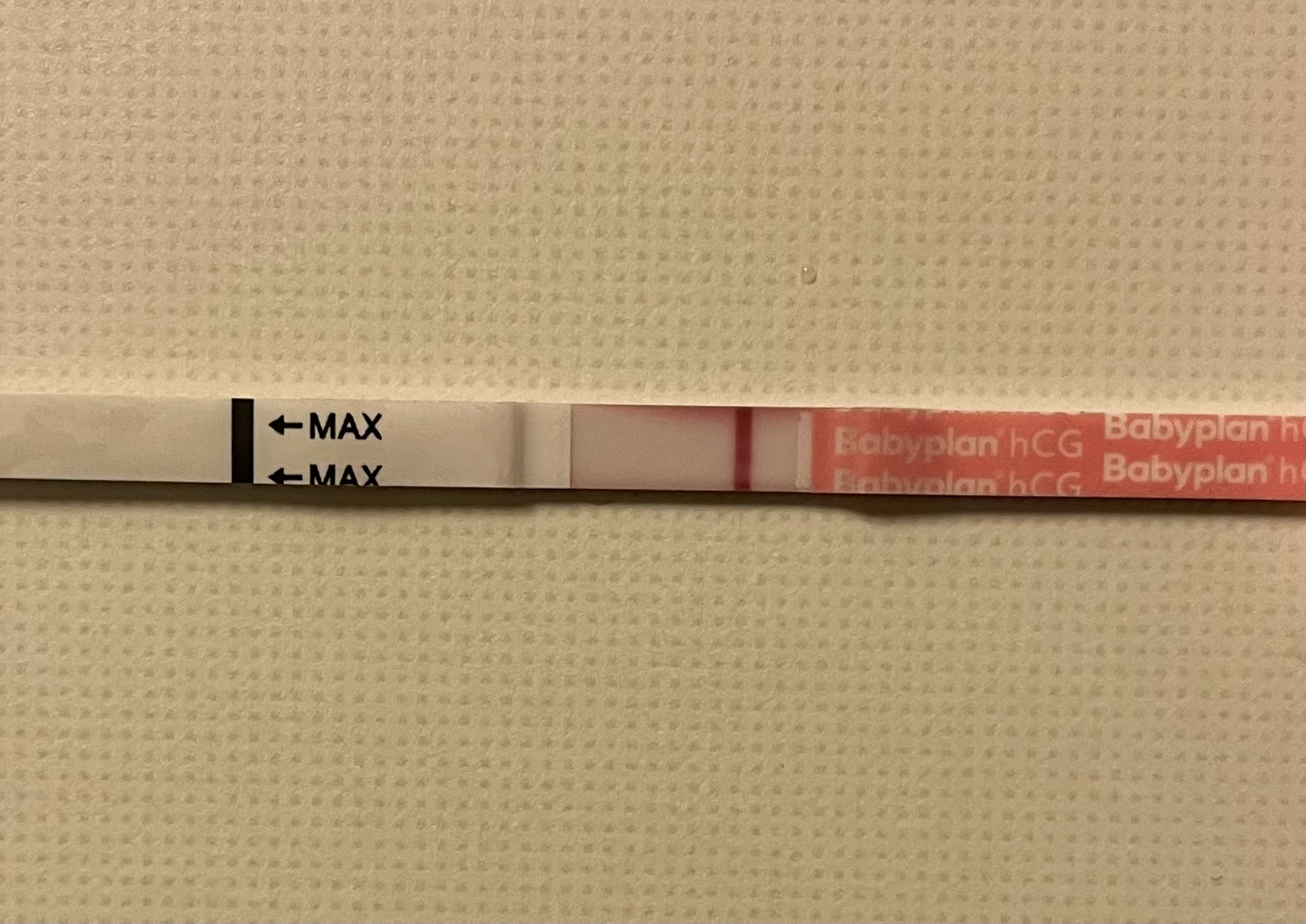 Åå! Håper håper! Bare husk at disse AI ene kan tenke at teststreken er et annet sted på bildet enn virkeligheten, men jeg kan skimte noe svakt!Det er så redigert som man kan få det, så svakt, så svaaaaakt. To timer etter at testen ble tatt, så det kan like gjerne være evap-linje, men jeg syns jeg skimtet noe innen fristen. Til og med checker ser den!Og man kan jo ikke manipulere frem noe som ikke er der? Jeg håper så inderlig at den er rosa, ikke grågul og at den vokser seg sterkere og sterkere! 10dpo idag, denne er tatt på to timers ettermiddagsurin.