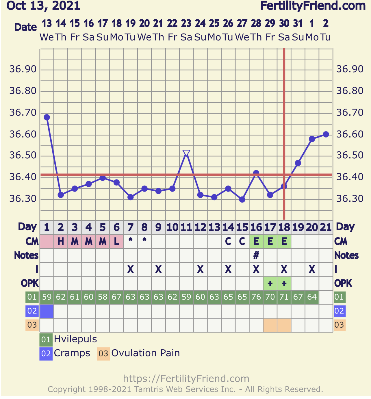 Ok, da tar jeg like greit 3 dpo jeg ogsåMin Premomo og FF var også uenige med en dag denne gangen, men jeg stoler mer på temperaturøkning, så tar utgangspunkt i FF
