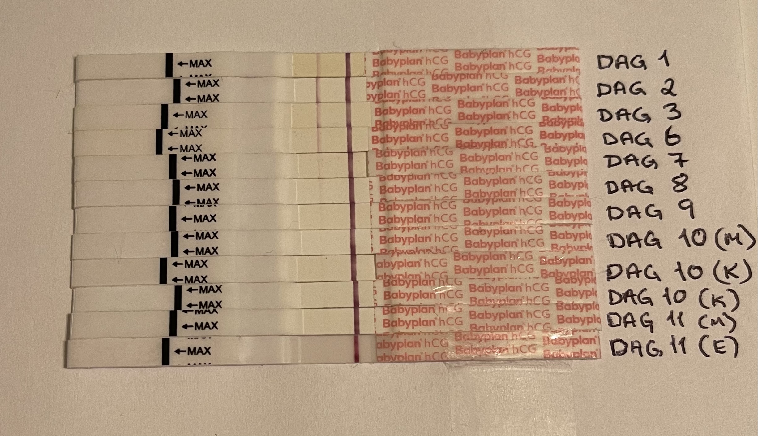 Jeg tenker at dette er veldig lovende og gleder meg til å se hvordan den ser ut med morgenurin i morgen tidlig!Gratulerer til alle med fine streker på testene