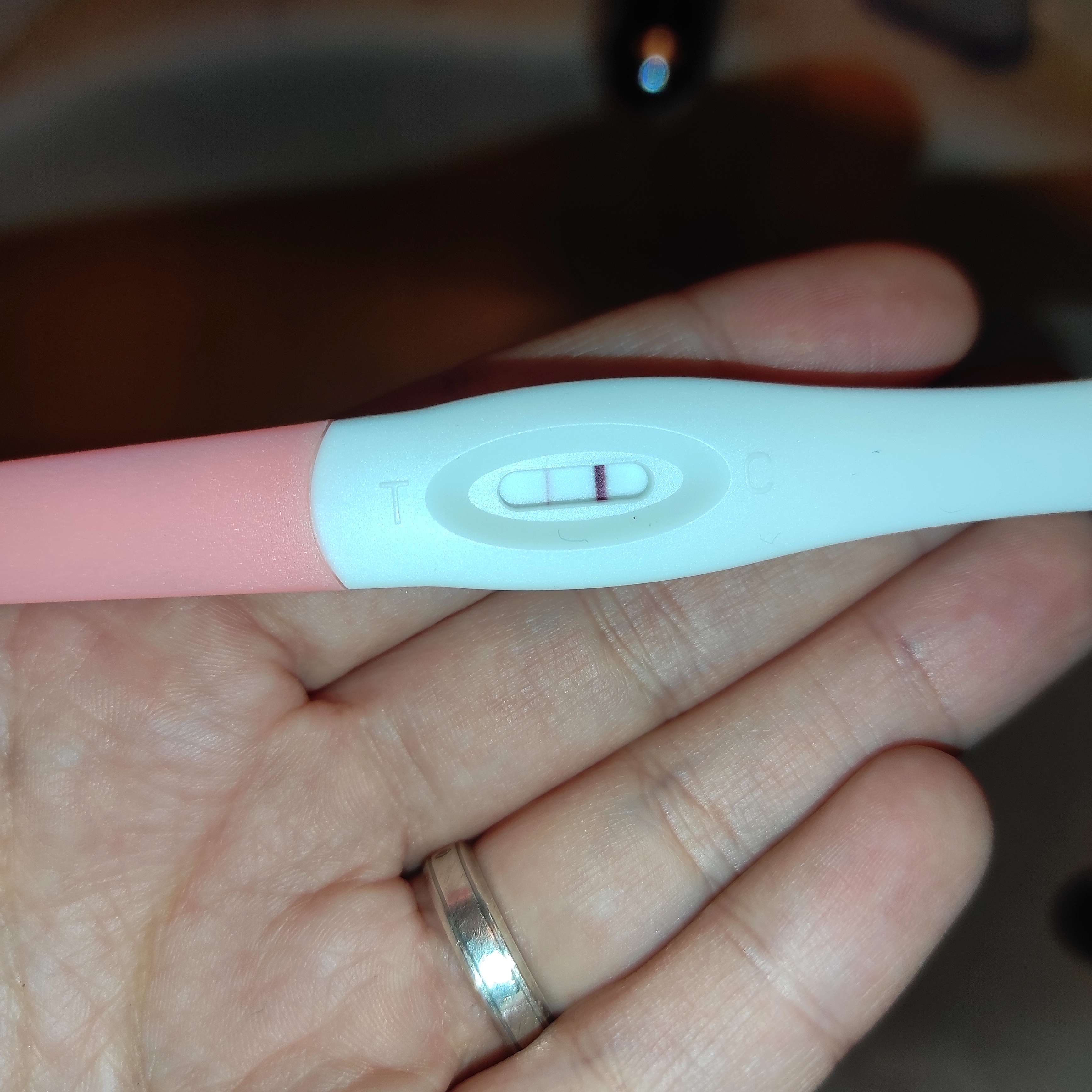 Jeg syns det skimter litt rosa farget, men kan være litt fra Ovitrelle det også :hungover: Skal ta ny test ikveld :joyful: