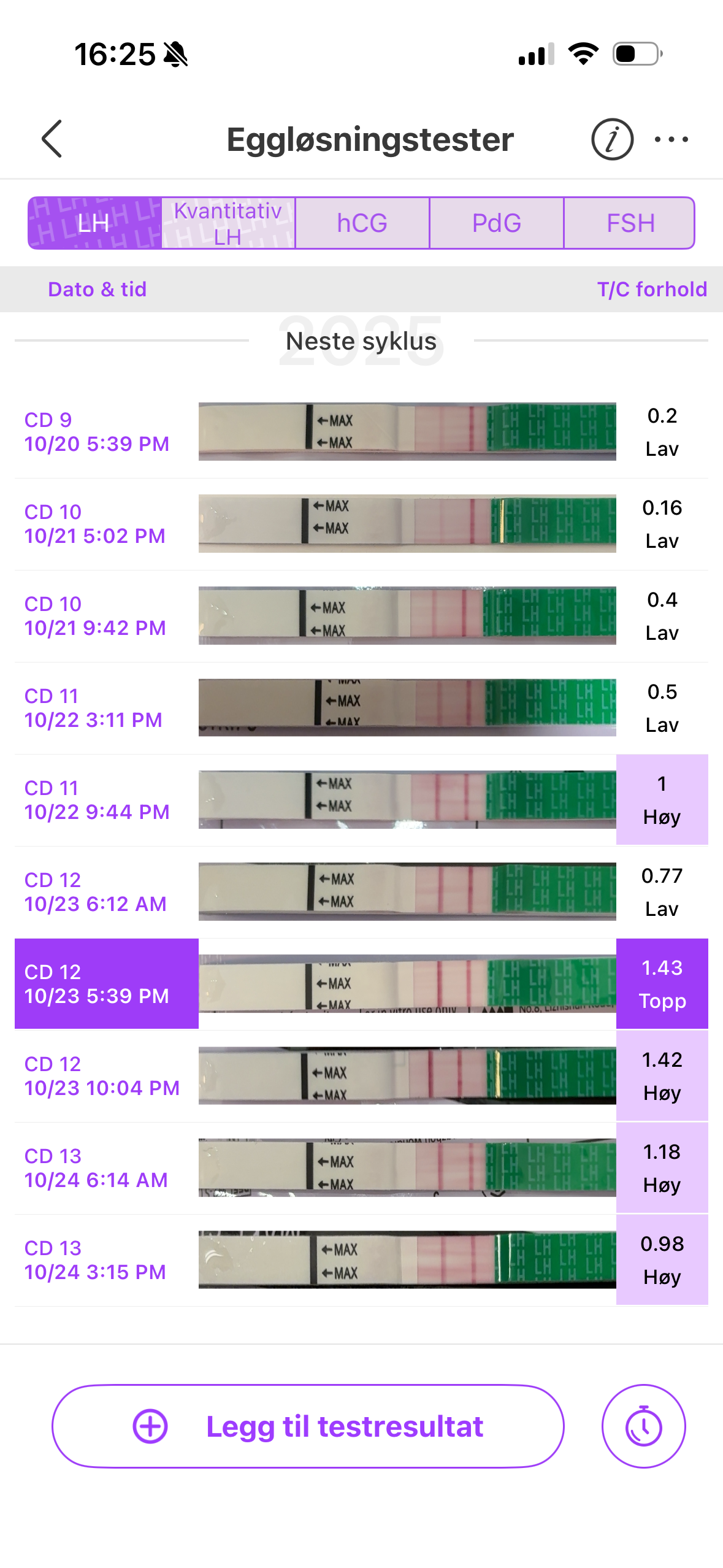 Gjerne litt krøll i starten etter SA! Begynte å lure selv forrige måned om jeg hadde hatt EL CD8 eller noe fordi strekene bare ble svakere når jeg begynte å teste CD10, men så ble streken til plutselig maks på CD18 :happy: Men ser det denne mnd også, at streken var sterkere CD10 enn nå CD16. Håper den kommer snart!