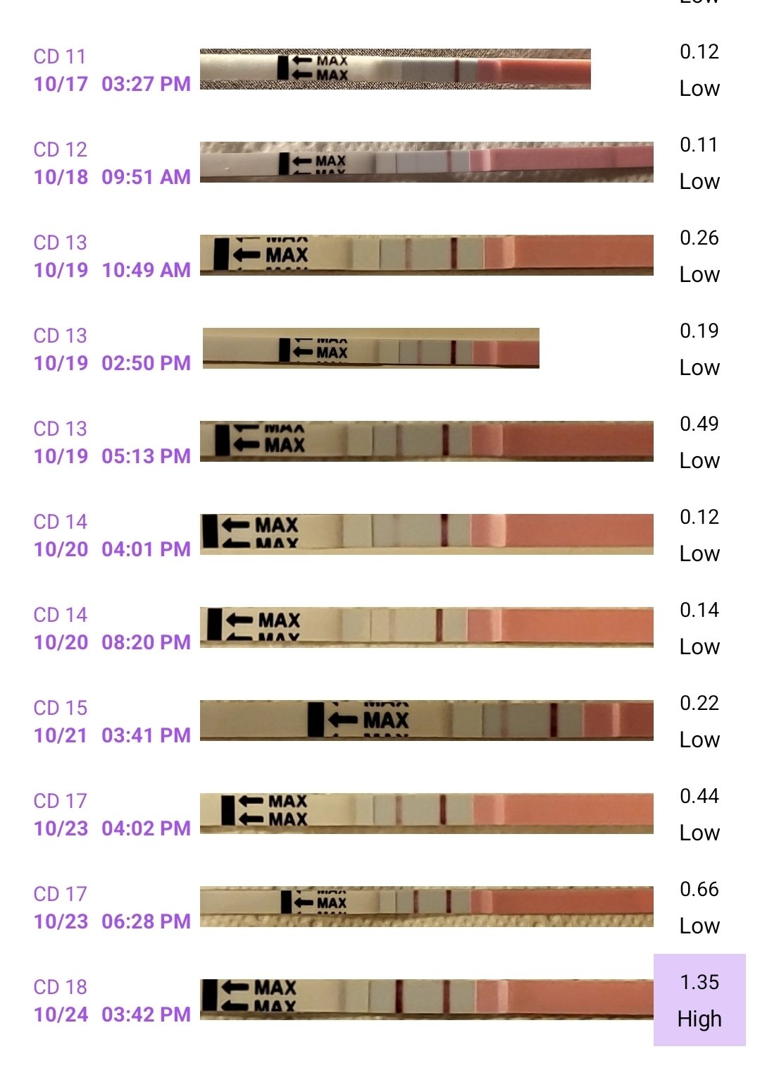 Positiv test + digital cd11 kveld, sterkere cd12 kveld og synkende cd13 morgen og mer synkende sånn 15.15. Og utfra symptomer kroppen gir med murringer, ryggverk og stikk/press nede i høyre side. Så har jeg med hjelp fra chatgpt kommet frem til at el sannsynligvis har vært i natt eller i dag tidlig :smiley-bounce012 Så da begynner jeg vell å telle 1 dpo i morgen tror jeg :laughing002