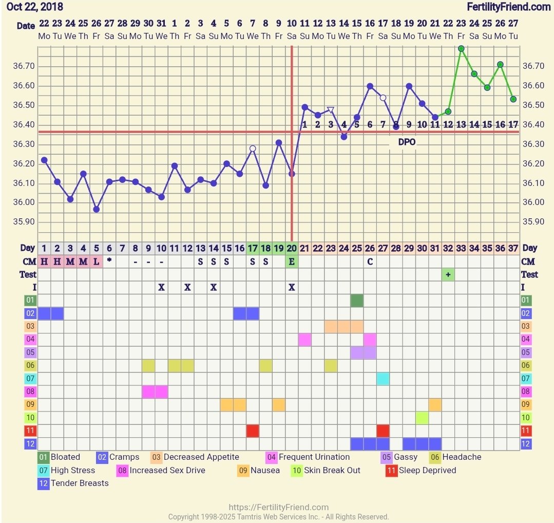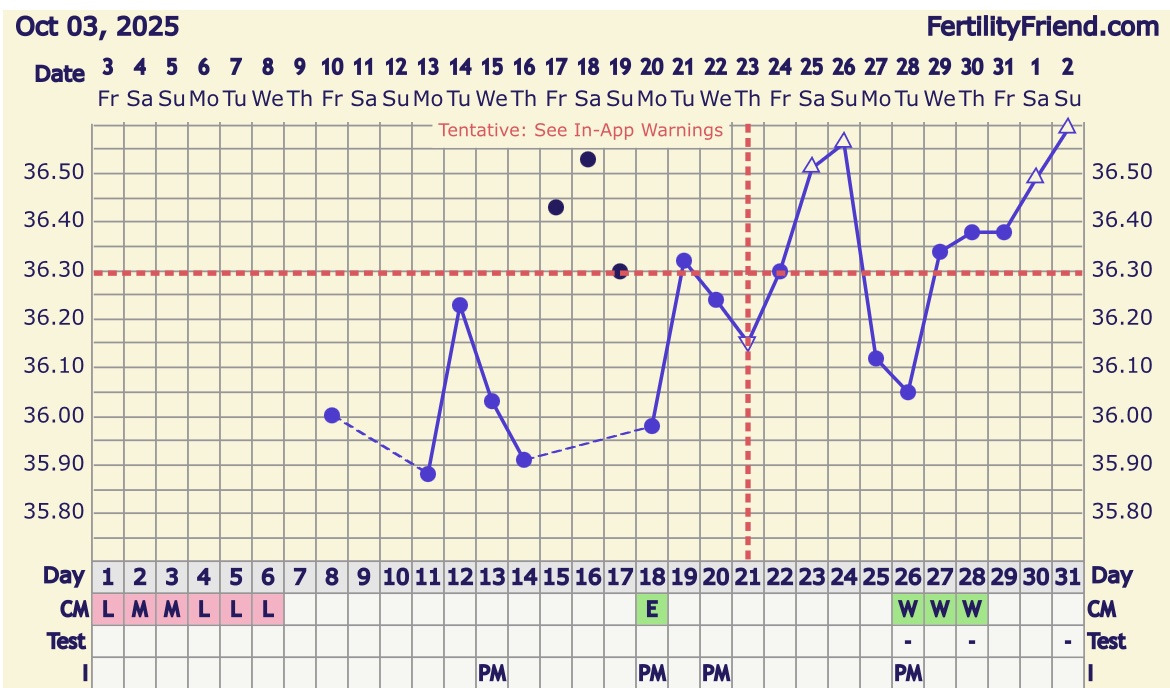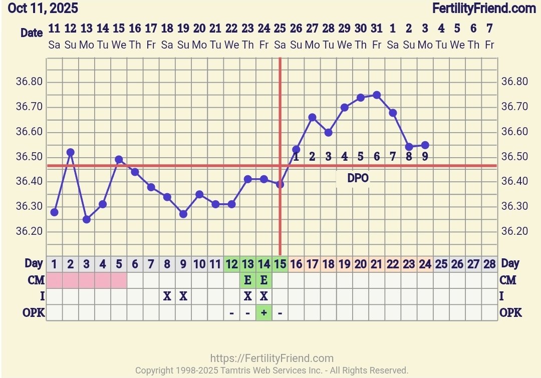 Synes jo nesten det ut fra grafen nå ligner mest på eggløsning 28. oktober, men ikke vet jeg.