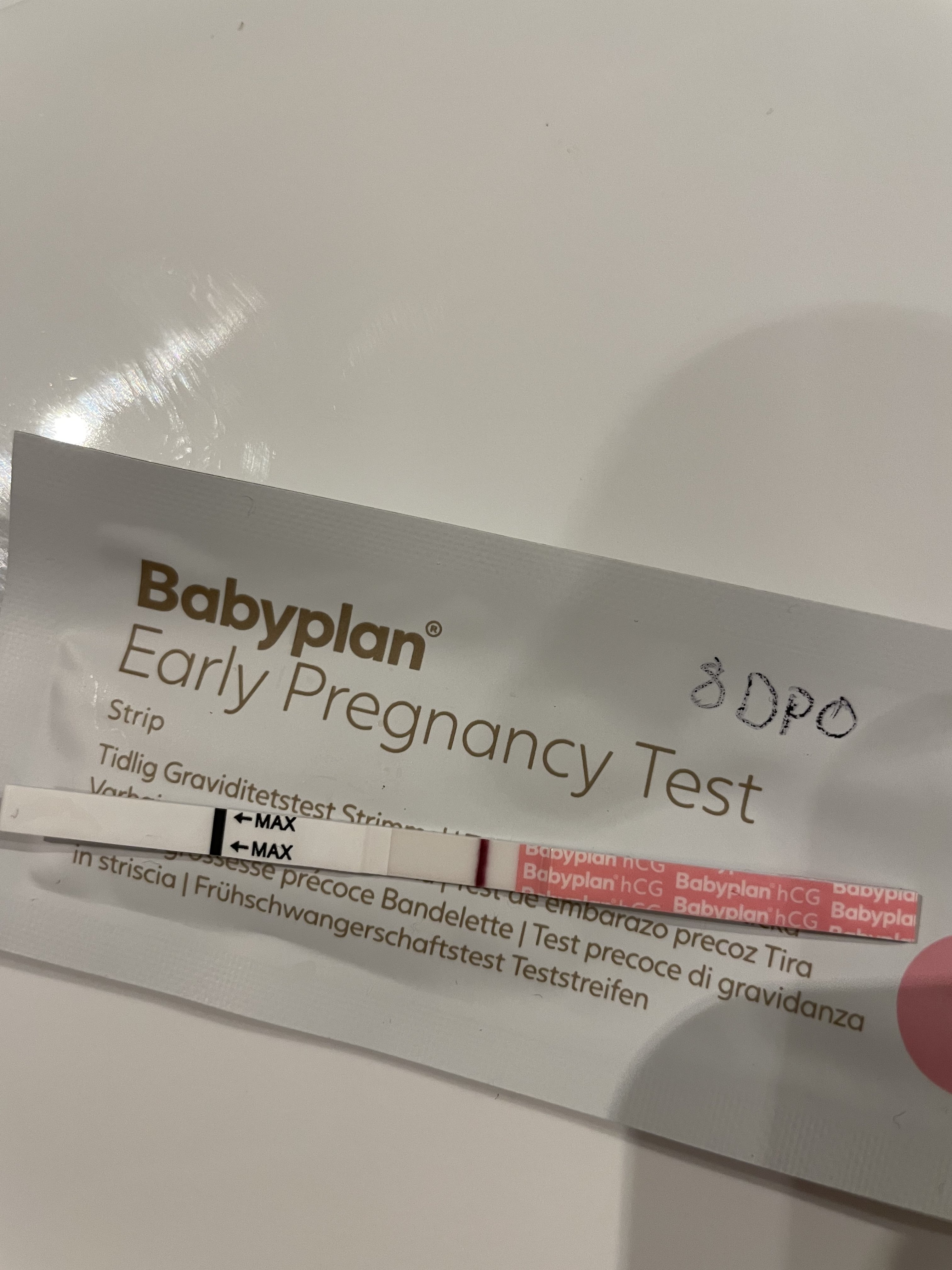 Jeg som ikke skulle gjøre dette, alene med ungene og vet jeg blir i dårlig humør resten av dagen :( det trøtte hodet mitt klarte visst ikke la være å gå fra meg en sjanse for godt humør… sukk… det ble det ikke. Er 8 muligens 7 dpo.
