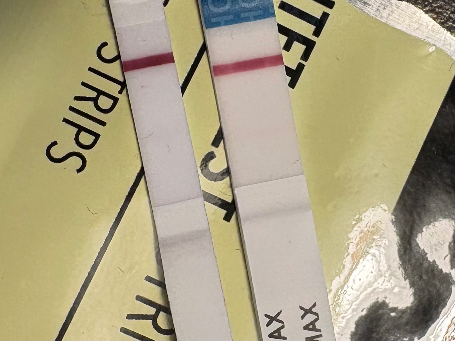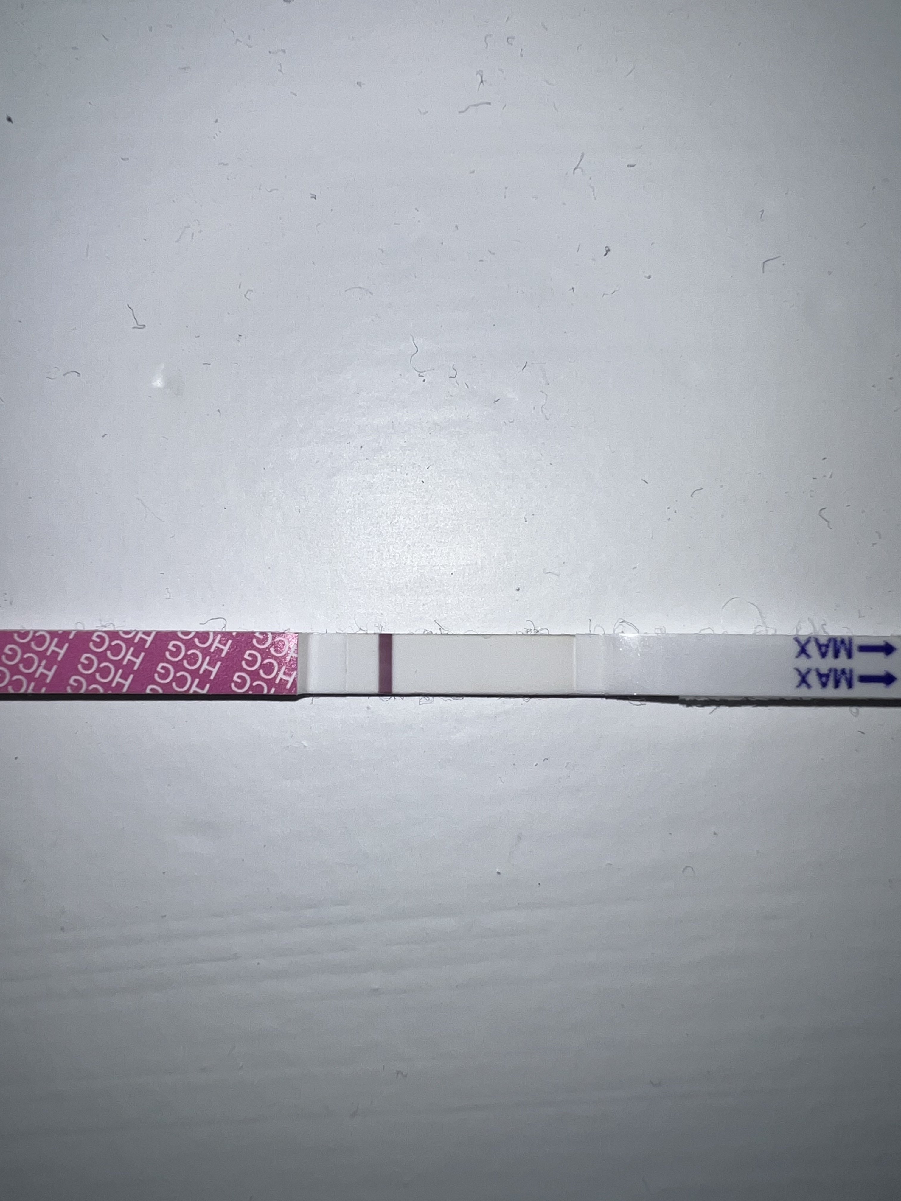 Samme svake strek i dag, så det er nok bare en dum og stygg skygge, evt en kjemisk.. fikk også litt blodig rosa og brunt slim når jeg gikk på do nå, mon tro om TR melder sin ankomst allerede? Er bare 10 dpo, og har egt ingen tegn på at mens kommer helt enda, men kan jo være, er jo første mens etter MA.