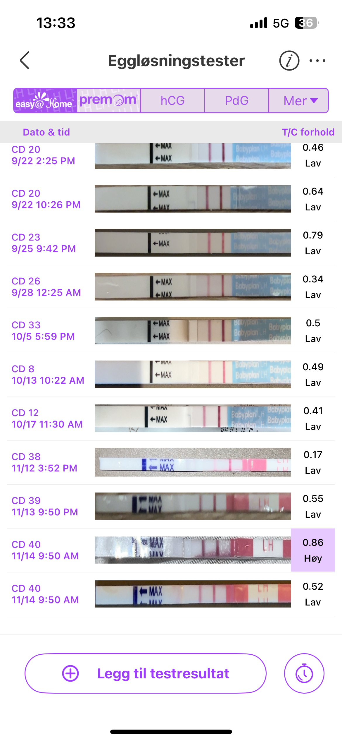 Var hos legen på mandag, tok blodprøver og fant ut at jeg var i tidlig follikulær fase. Men har tatt eggløsningstester og i går og i dag har de vært sterke. Skjønner ikke så mye av syklusen min :think005 Lagt inn aksjer både igår og i dag, så vi håper håper:Heartred