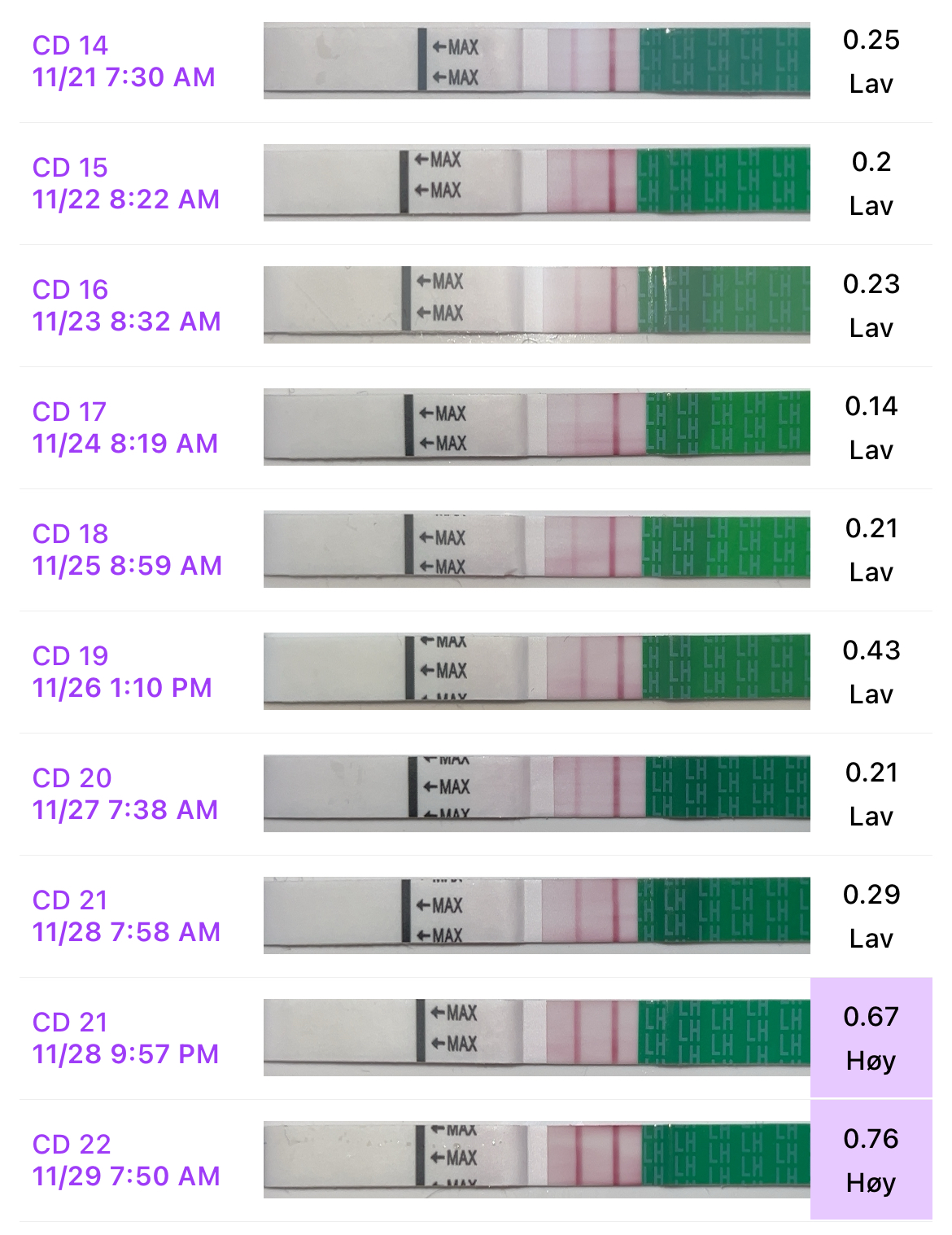 El pleier å komme rundt CD19-21, er fortsatt ikke der. Men det hadde ikke noe å si for gynekologenVanskelig å vite. Pleier du å ha lange sykluser der EL til slutt kommer? Eller er dette første gang med krøll? Har ikke noe erfaring med medisiner og sånt dessverre![]()