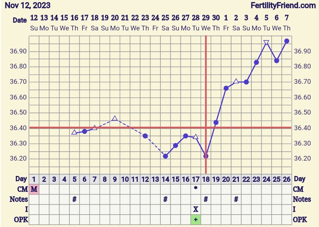 Ooh så utrolig spennende! De er jo nesten helt likeSå gøy!! Min temp ser også veldig bra ut, og det gir jo ett lite håp da
