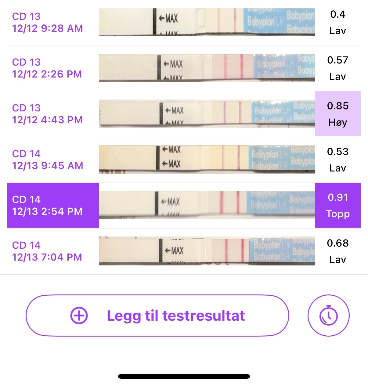 Eg hadde så sjukt mykje vondt den 13, og med toppen som sannsynligvis var natta før, så har eg ein følelse på den. Den 14 føltes ut som ein ikkje-dag i forhold for å sei det sånn. Får vel fasit ved mensenMed positiv den 13. så skulle man jo kanskje trodd det var den 14. krysset dukker opp? Da hadde du jo også et stort hopp dagen etterpå![]()