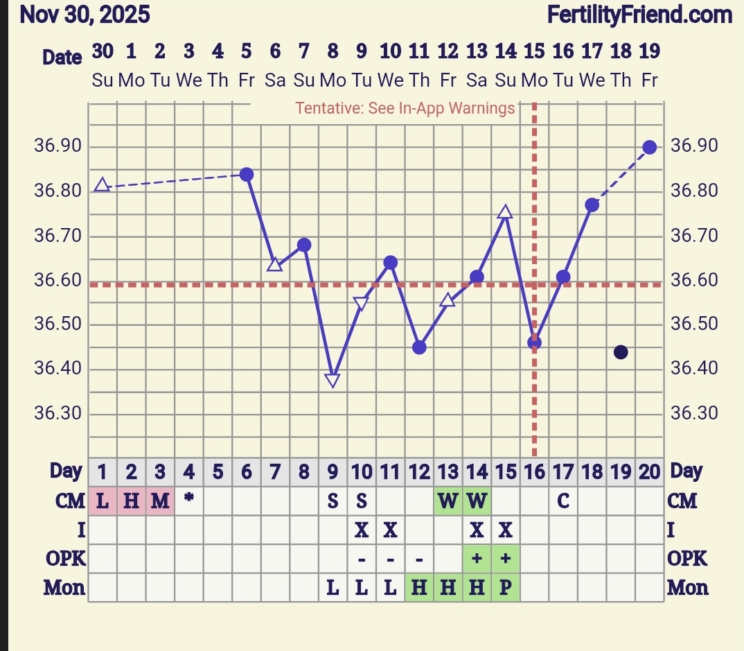 Tempen er fremdeles lovende, men må innrømme at jeg har gitt opp håpet. Til tross for at det i teorien kan gå fremdeles, så tror jeg ikke det denne gang.. har aldri fått positiv test så sent som dette, eller senere uten at det ikke gikk bra.