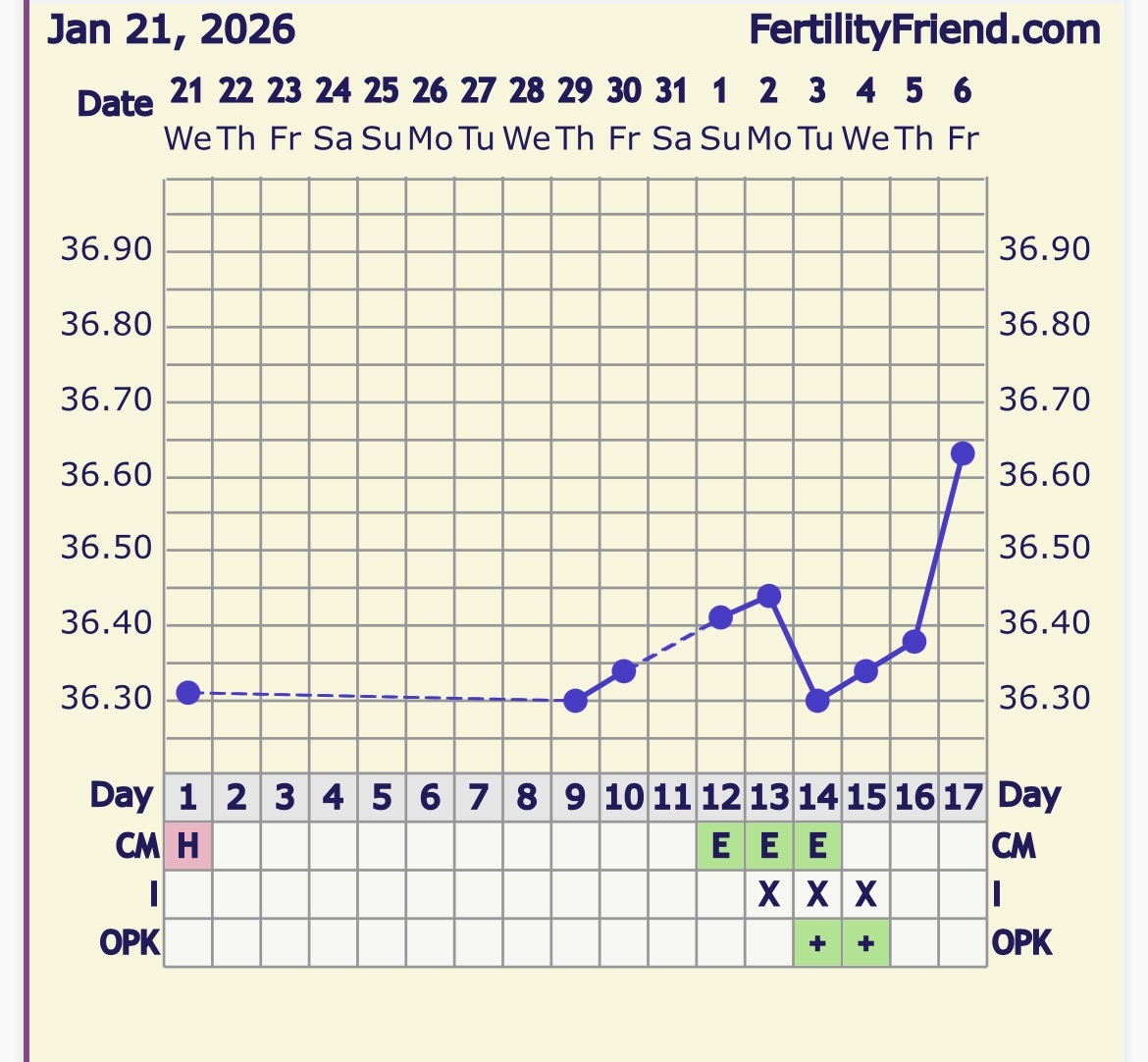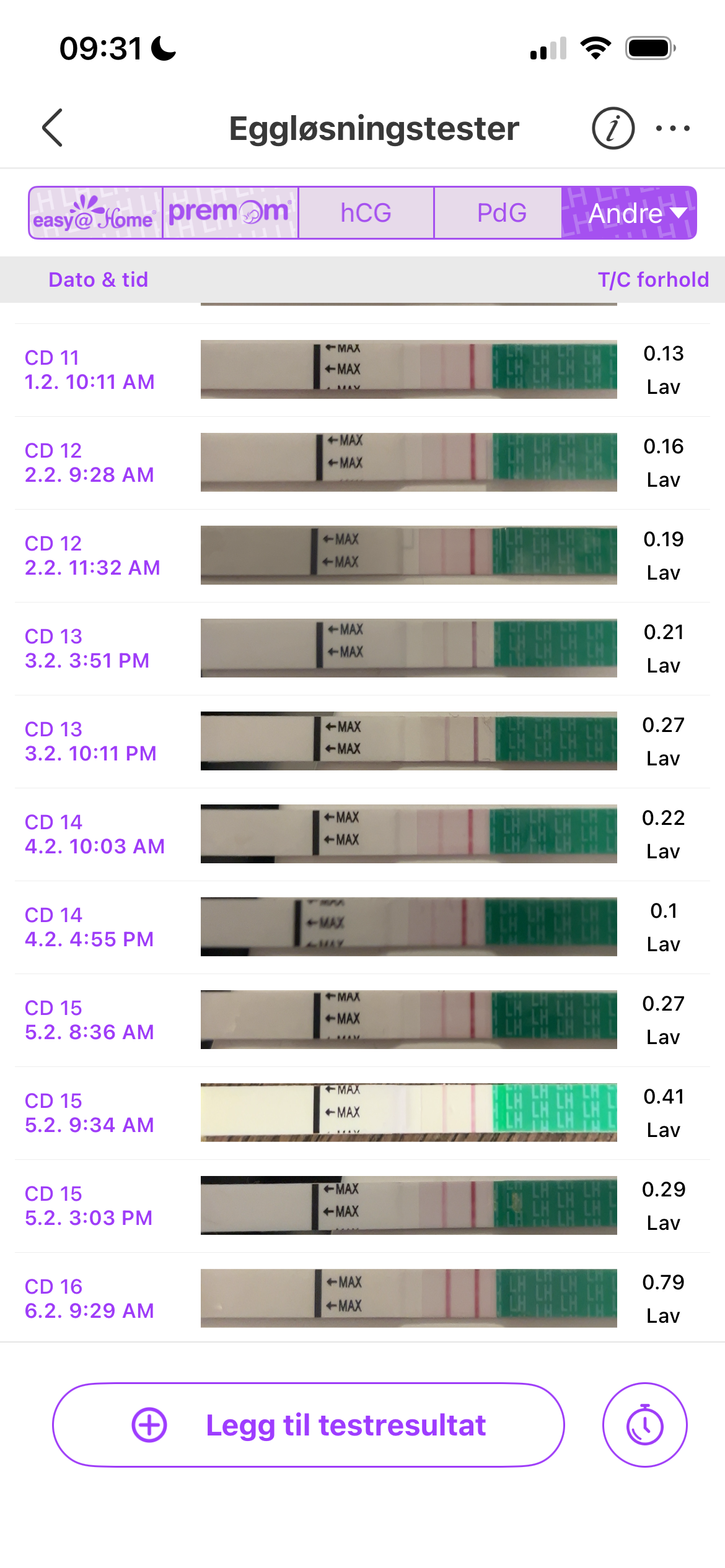 Jeg vet egentlig ikke helt. Har egentlig sagt til meg selv at jeg ikke skal teste før IKM, men det er 21. og en evighet til. Mellom 14-16dpo regner jeg med det blir.