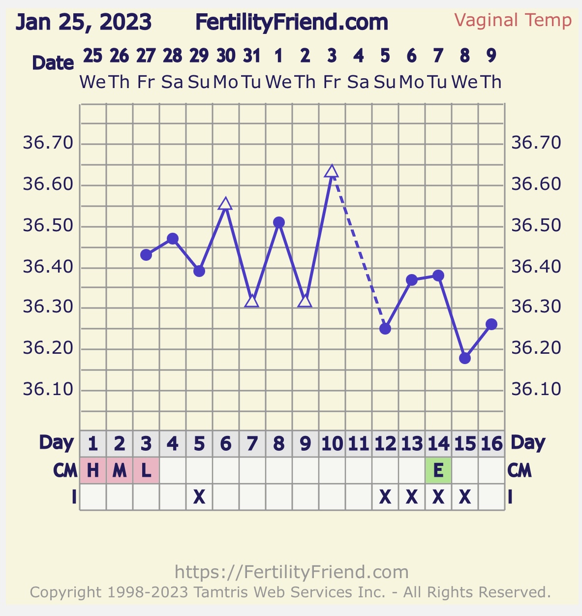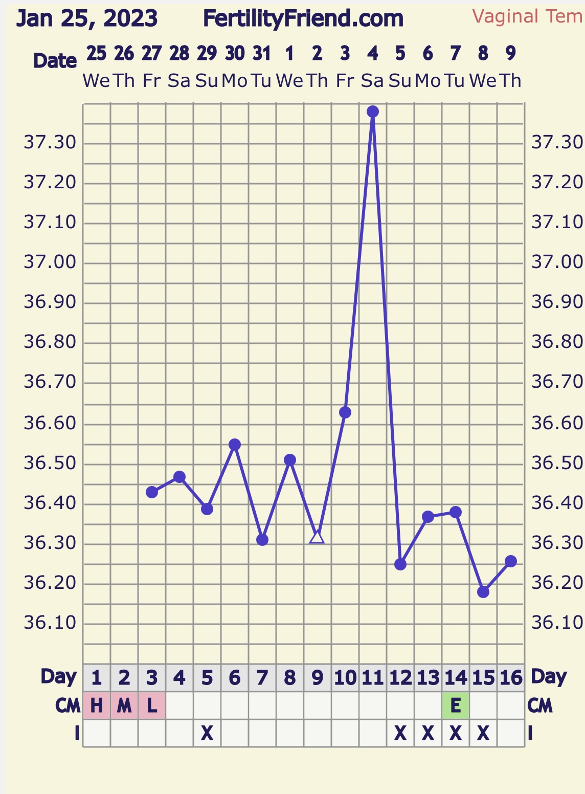 Har vært syk av og på i flere uker, men må teste med Ladycomp daglig. Så lurer på om EL da var på mandag, slik jeg føler den var?