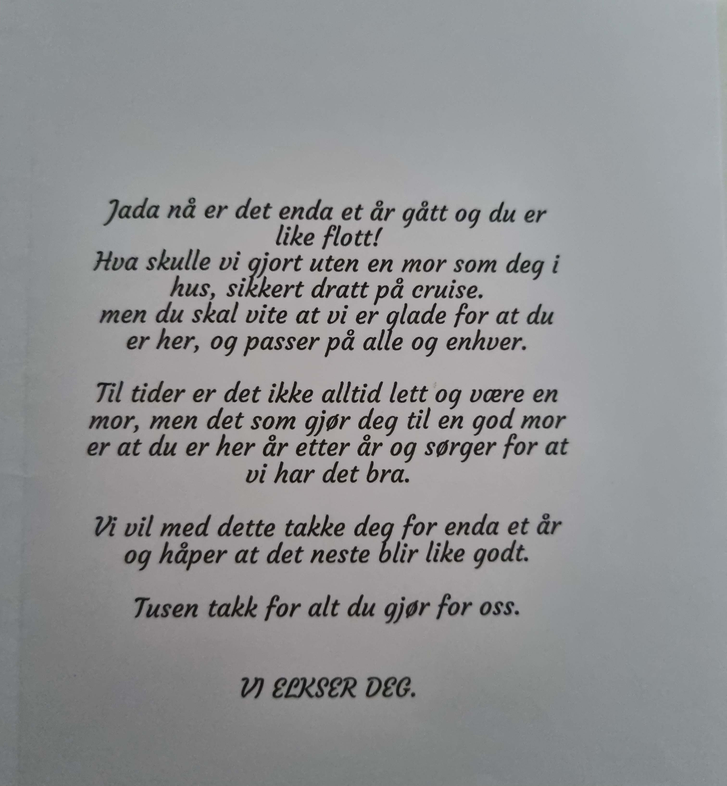 Jeg er virkelig en heldig dame som har en så flott mann og herlige ungerFått ynglingskaken min, charms til armbåndet mitt, tegninger og flotte kort