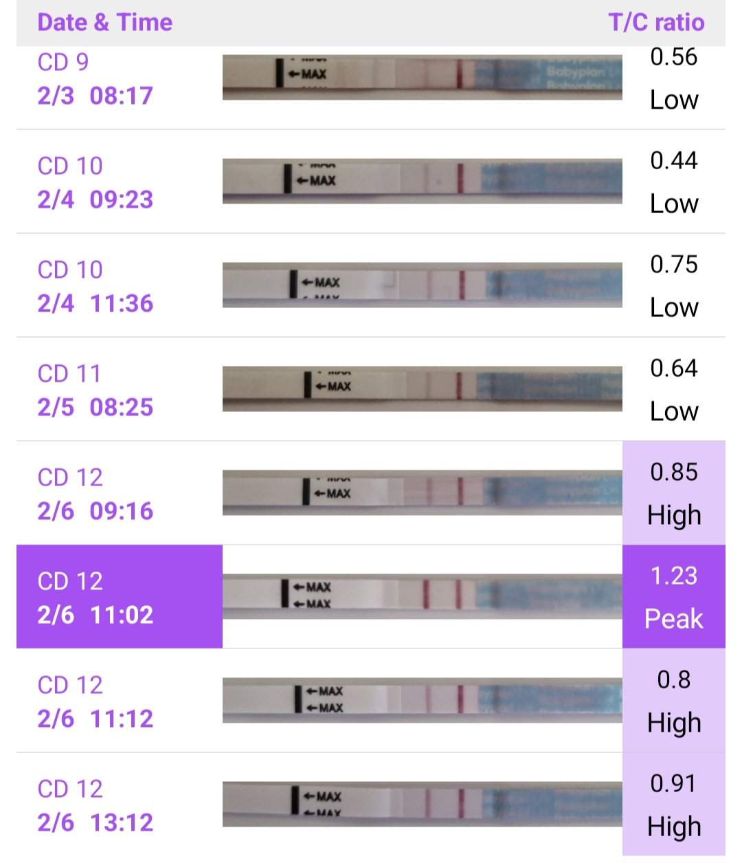 Fikk sterkere el-test idag tidlig, så positiv på 2 urin(var litt konsentrert pga jeg kun hadde drukket en kopp kaffe) og negativ igjen på 3.urin(denne veldig utvannet). Monitor sier jo da høy siden jeg tok på morgenurin. Kanskje får jeg positive tester fra morgenstunden imorgen og litt utover dagen. Vel, vel, det får jeg se. Fått lagt inn babyaksjer idag formiddag, på tross av at 4åringen er hjemme med 40 i feber(benyttet sjansen når han så film og mini sov lur)