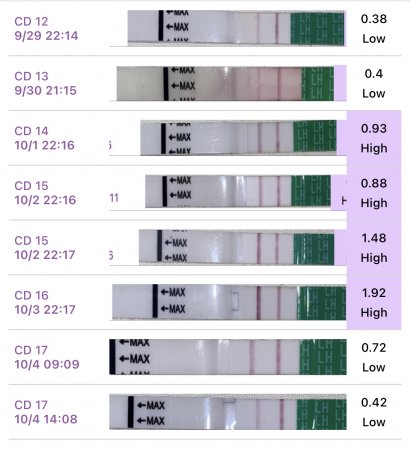 Sjå der jaIkke helt positive enda. men skader ikke legge inn aksjer, man er mest fertil i dagene rett før ELjeg får EL slim 2-3 dager før positiv test. Legger ved skjermdump av mine tester forrige syklus
