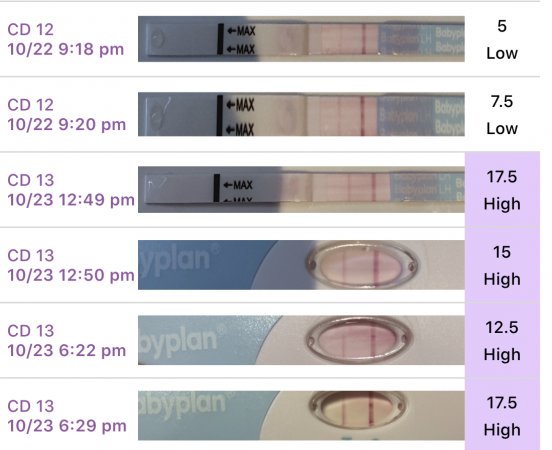 Gårsdagens og dagens testar lagt inn i to forskjellige appar :anyone har hatt litt el slim og hatt mensmurringar i nokon dagar. Eg syns testane ser langt ifra positive ut, kva syns de? Er appane så forskjellige på resultat. Burde eg legge inn aksjar ikveld? :happy: