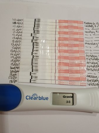 Er tydeligvis ulike måter å regne ut termin på.. Moro å se utviklingen på digital test, selv om man ikke skal ta de alt for bokstavelig. Selv har jeg bare testet en gang denne runden, og fikk 2-3 14 DPO. Har ligget med omgangssjuka siste døgnet, det har vært helt pyton. Bedre nå heldigvisKommer du til å ta blodprøve etter hvert?