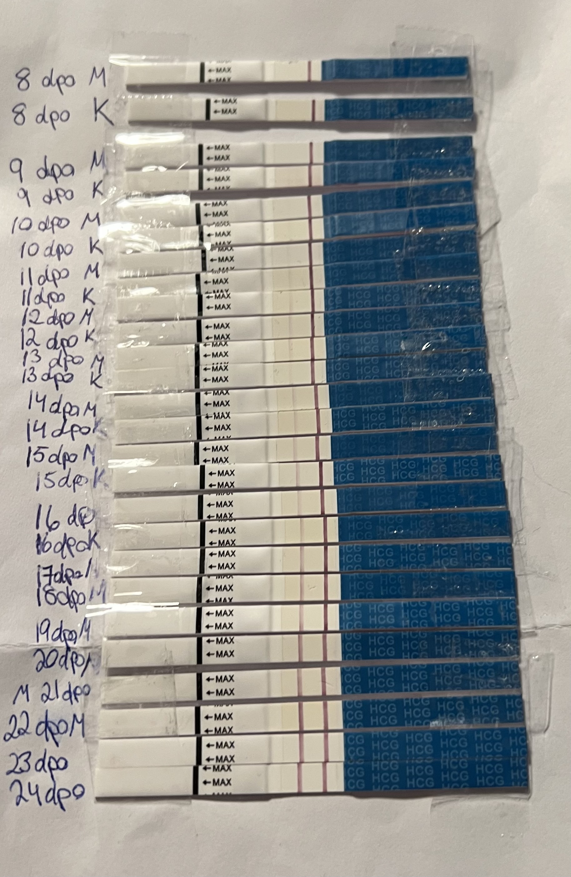 Jeg er i dag 15 dpo og ikke så veldig tydelig strek. Så vet egentlig ikke. Kanskje jeg burde ta en hcg prøve?