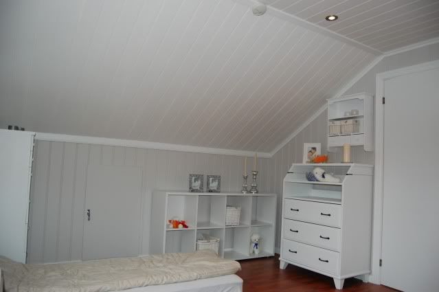 Rommet er forresten malt grått med smartpanel på veggene, og blir ikke malt igjen fordi vi håper på salg etterhvert.... Så må dekorere veggene på en annen måte....