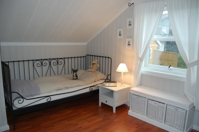 Jeg har en gjesteseng som kommer til å stå der inne.... Den er 90x200 cm og er i sort smijern....