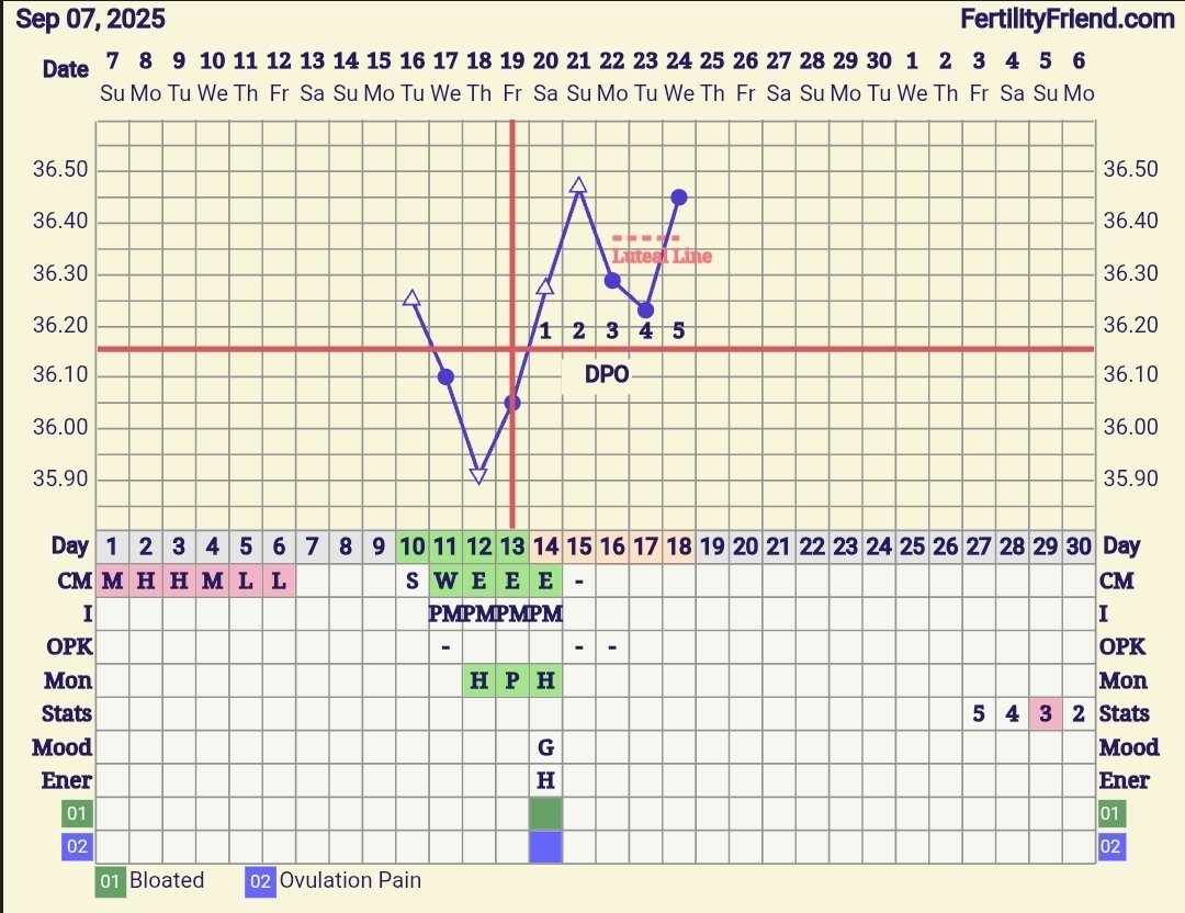 Første skikkelige peak på eggløsningstesten. Startet temping, men lurer på om jeg har en sånn basaltemp som ikke dropper ved eggløsning. Det ser jeg nok om et par dager :smiley-ashamed004 Forloveden min har sagt ja til å ta et par ekstra skift på gamlejobben, så han jobber dobbelt både i dag og i morgen. Har sagt at han faktisk må vekke meg når han kommer hjem hvis vi skal klare prosjekt Midtsommerbaby 2026 :flower Pga eggløsningen kommer på lørdag eller søndag så kommer jeg til å miste neste prøveperiode. Da er jeg offshore. Derfor er denne prøveperioden ekstra viktig (!!!) :smiley-angelic001