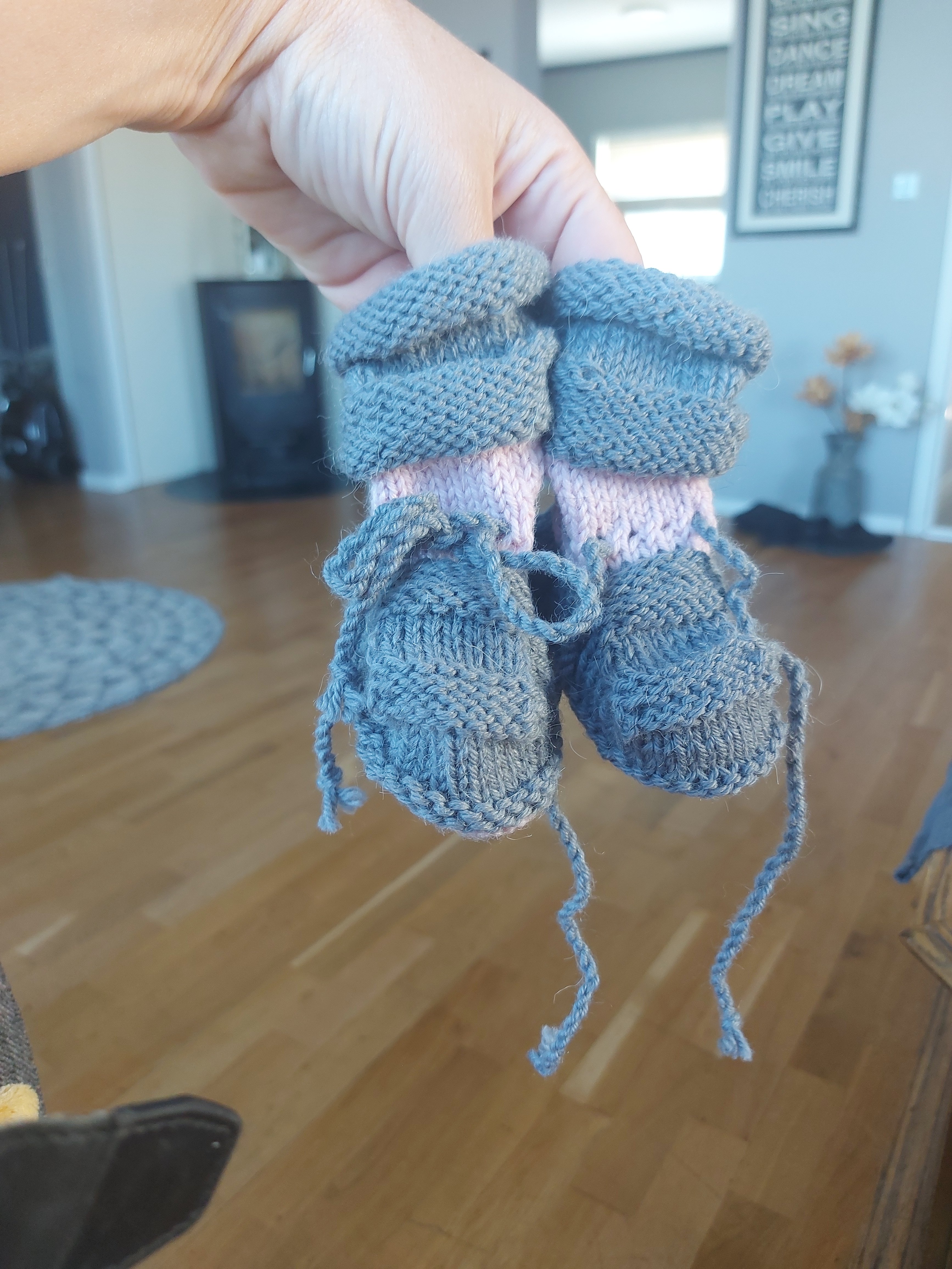 Jeg strikker babysko og de er så gull verdt både for å holde babyen varm på bena og ikke minst at de er fine å se på.