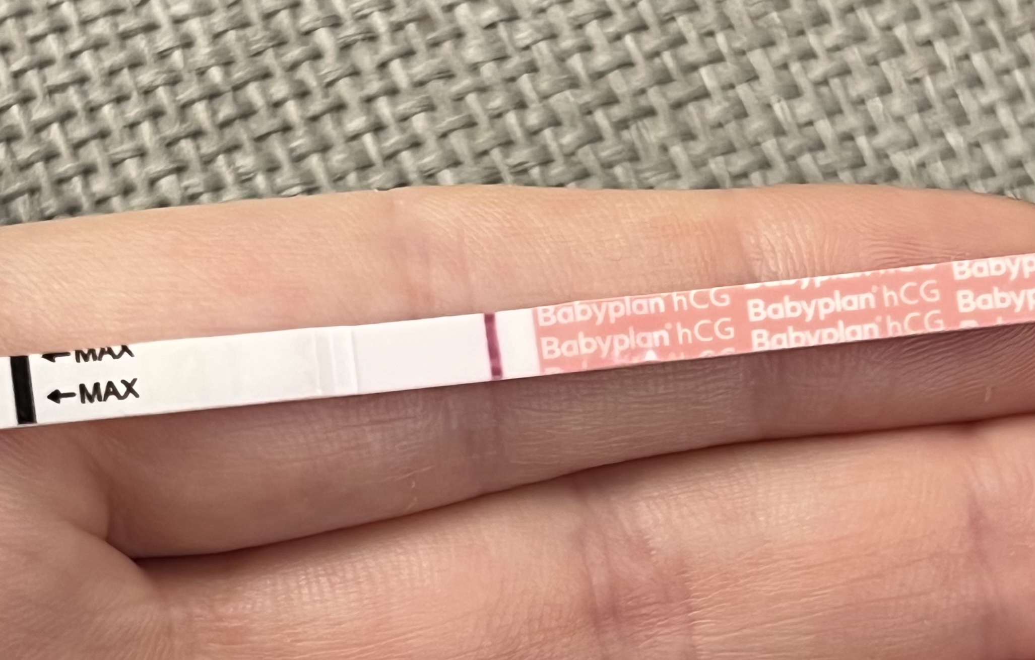 Også ja, jeg har jo latt galskapen ta styringa! Her er min test, med morgenurin, 7 dpo! NOE syns jeg at jeg ser, men det kan være skygge og det kan være innbilning