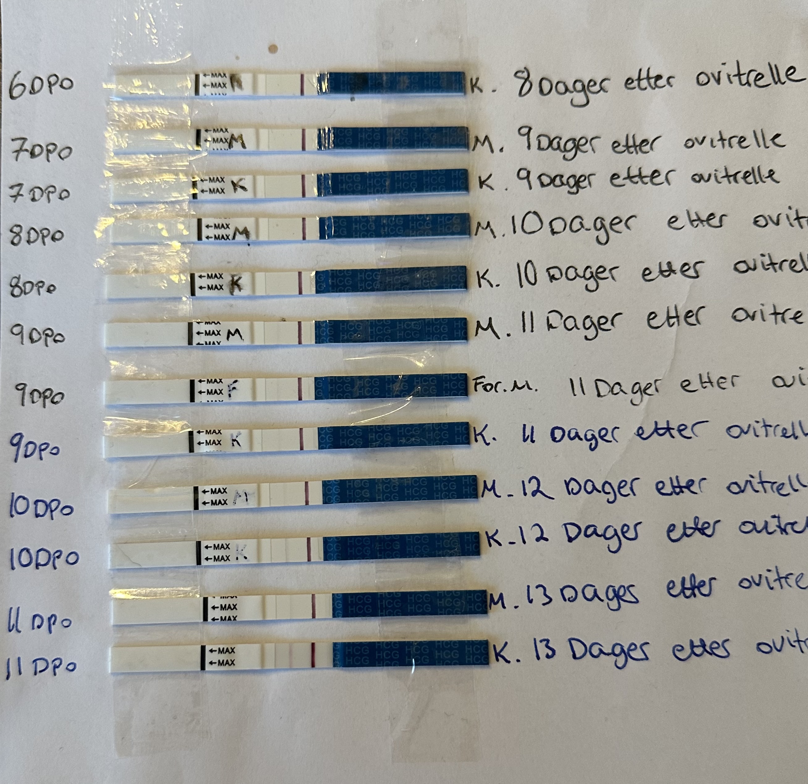 Interessant å se hvor tydelig makesure er i forhold til babyplan, og hvertfall hvor mye sterkere den vanlige strimmelen (midten) er kontra tidlig test (øverst)!!!