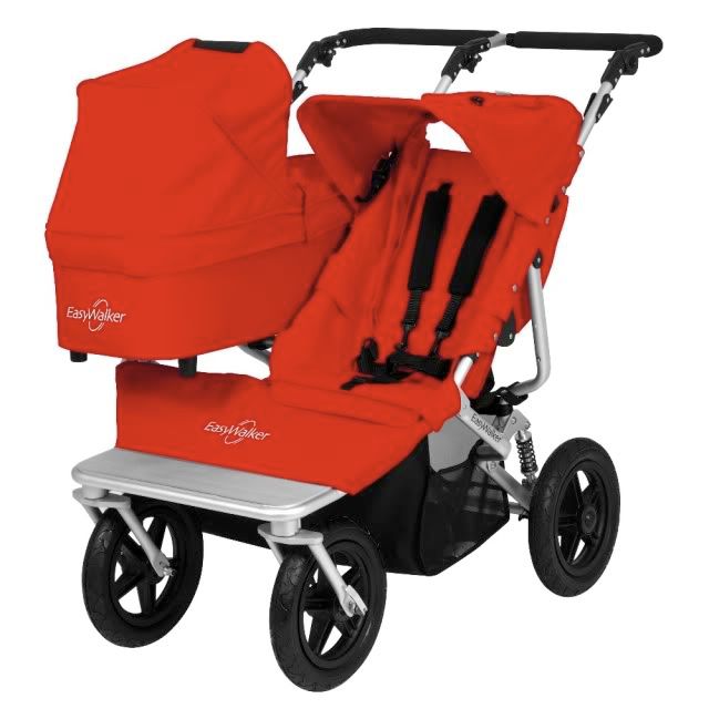DuoWalker er brukervennlig, sikker og multifunksjonell. Passer fint både som tvillingvogn og søskenvogn, siden de 2 sittedelene er uavhengig av hverandre. 2009 modellen bærer navnet Easy Walker Duo.