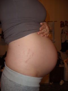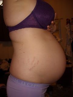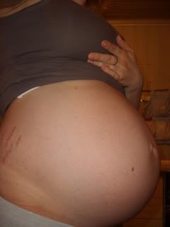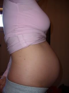 Var jo 30 uker i går å da er det på tide med nytt magebilde [8D] Skjønner hvis dere blir fryktelig lei denne magen [8D][:D] Ser det er en litt annen form på magen nå [:)] Virker rundere og høyere opp [8D] Å at den er høyere opp merker GODT på pusten [&:][:)]